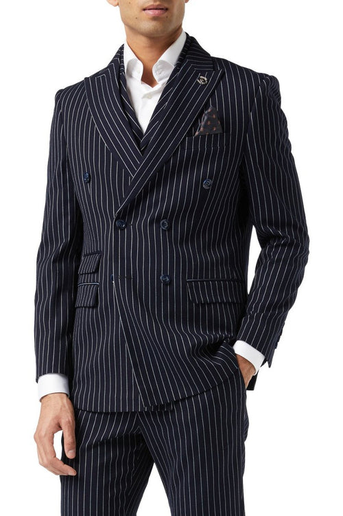 ALFRED - BLACK DOUBLE BREASTED PINSTRIPE BLAZER