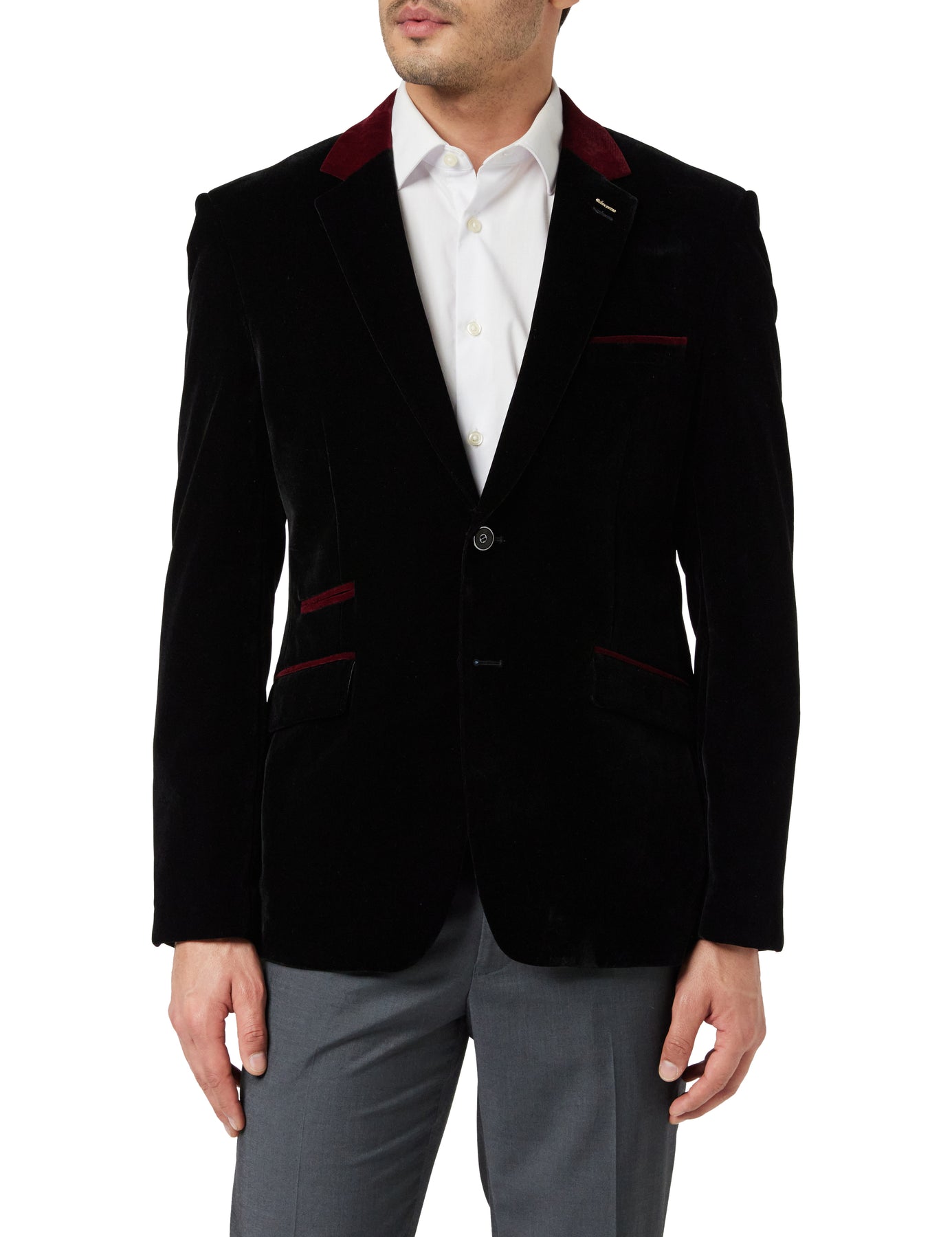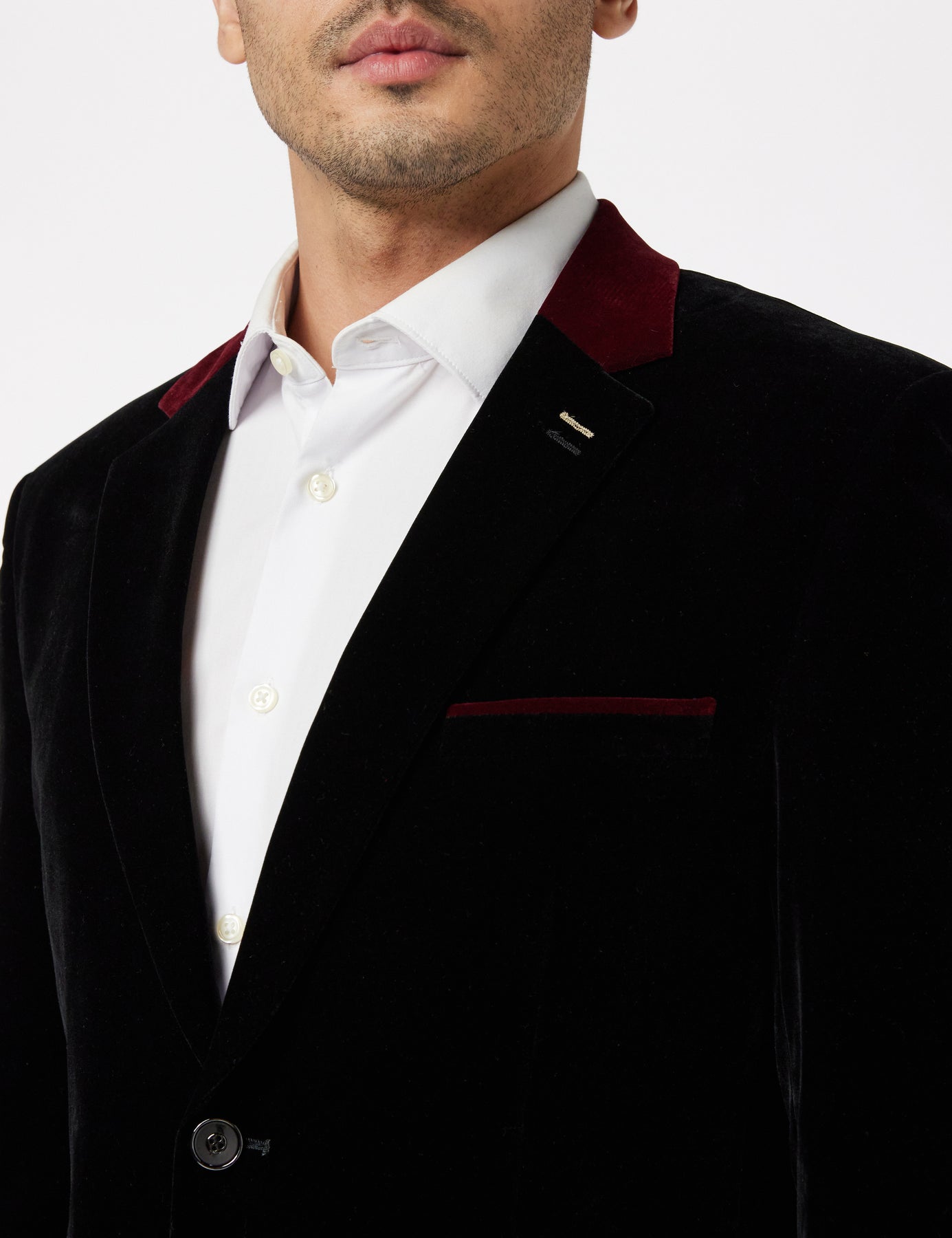 TIM Schwarzer Samtblazer mit kastanienbraunem Besatz