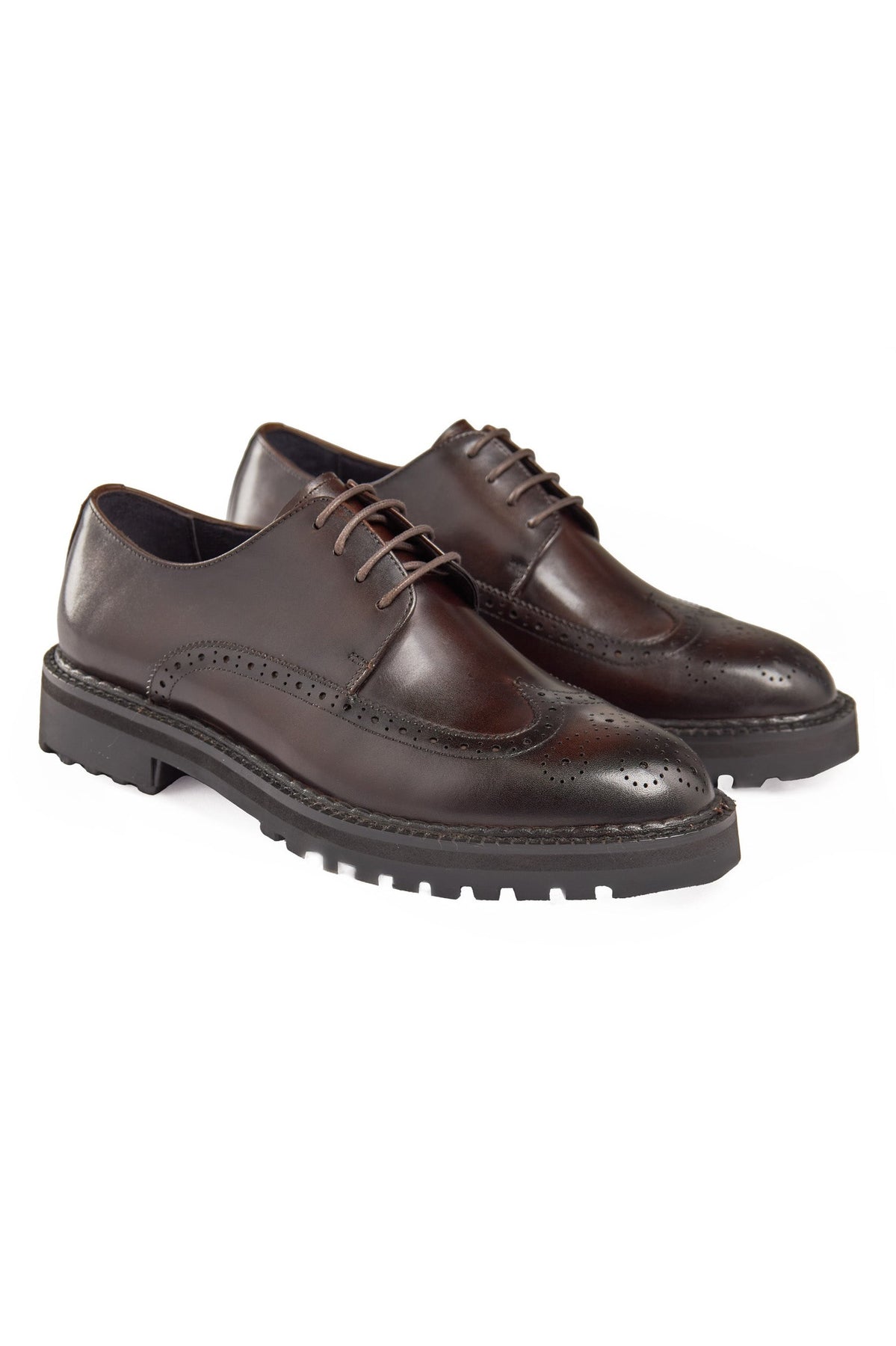 BRAUNE SEMI-BROGUE-DERBY-SCHUHE