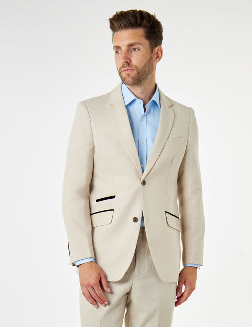 Jacket – Classic Notch lapels, Two button front, Double vents in back, Suede trimming on pockets, Regular length