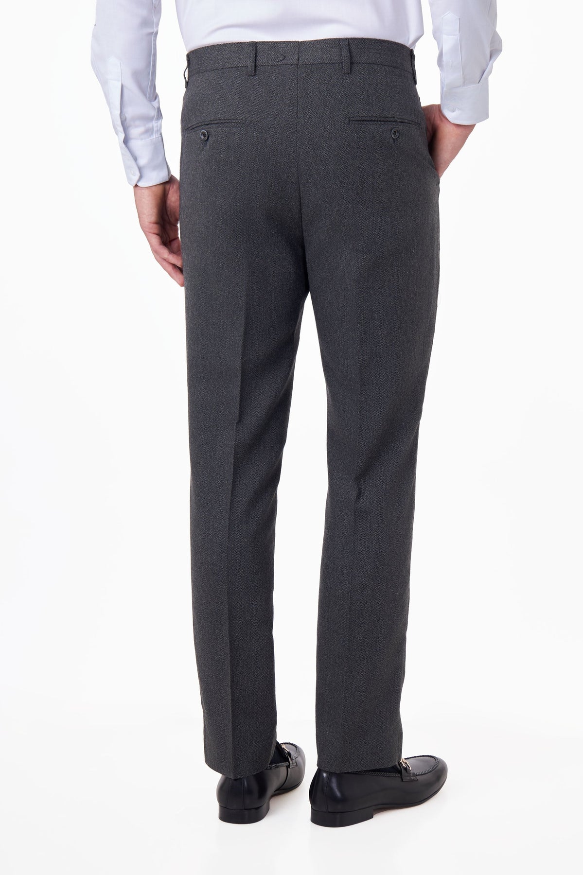 CALIX – Wool Mix Herringbone Tailored Dark Grey Suit Trousers