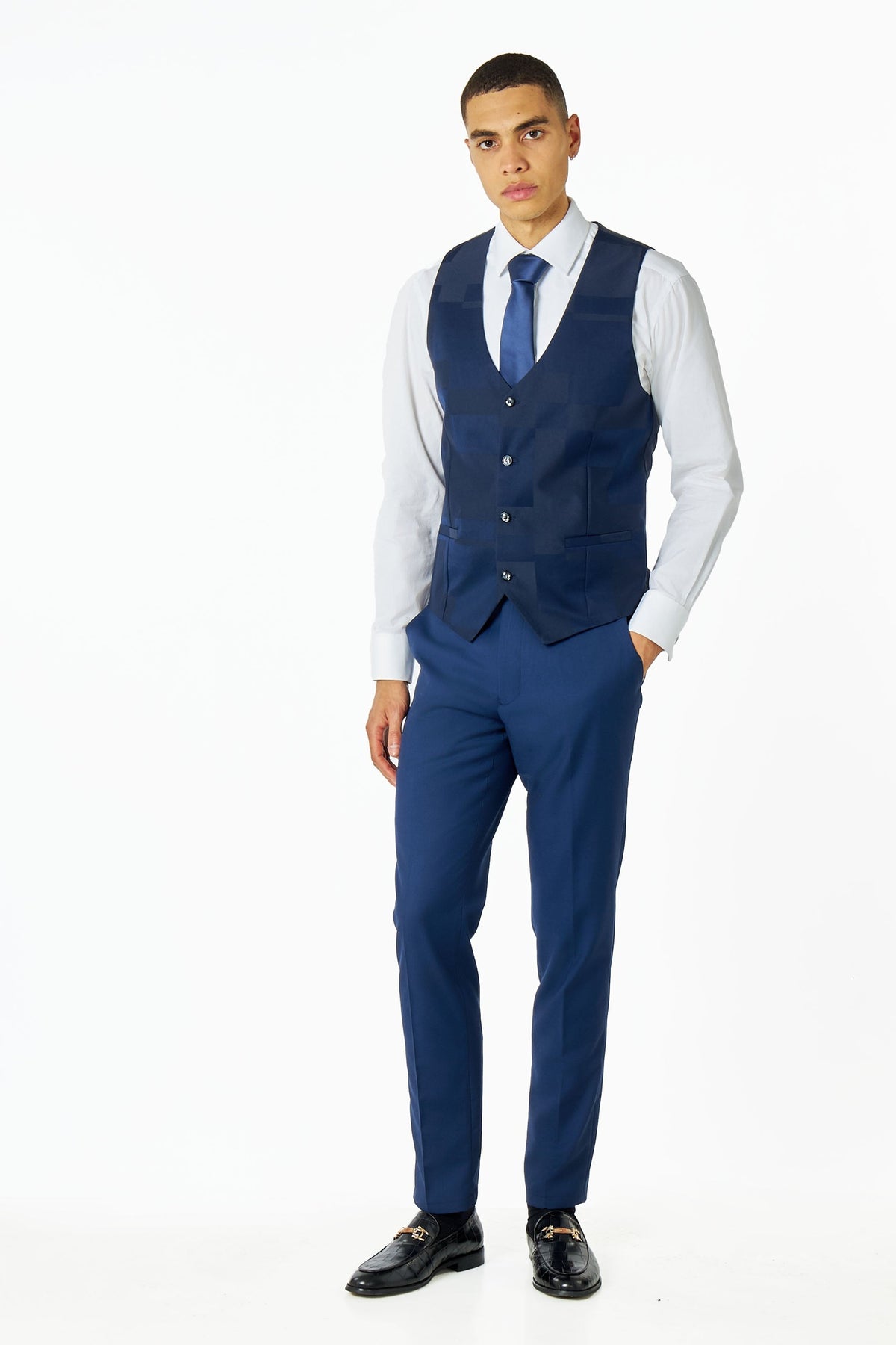 Elevate your occasionwear with the Geometric Printed Navy 3 Piece Tailored-Fit Suit, designed to add a contemporary edge to classic formalwear. Featuring a matching geometric-printed jacket and waistcoat paired with clean navy-blue tailored trousers, this refined ensemble is ideal for weddings, best man’s attire, prom parties, dinner events, and special occasions. Blending modern design with timeless elegance, it ensures a confident and standout appearance.