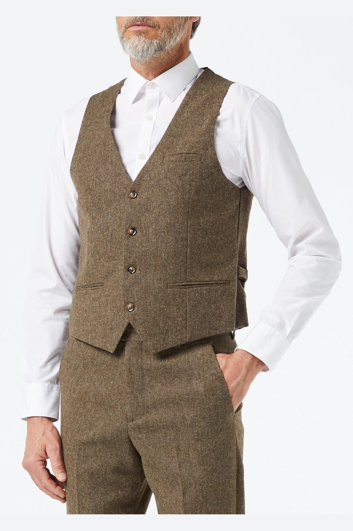MENS TAN VINTAGE TWEED HERRINGBONE RETRO PEAKY BLINDERS STYLE WAISTCOAT