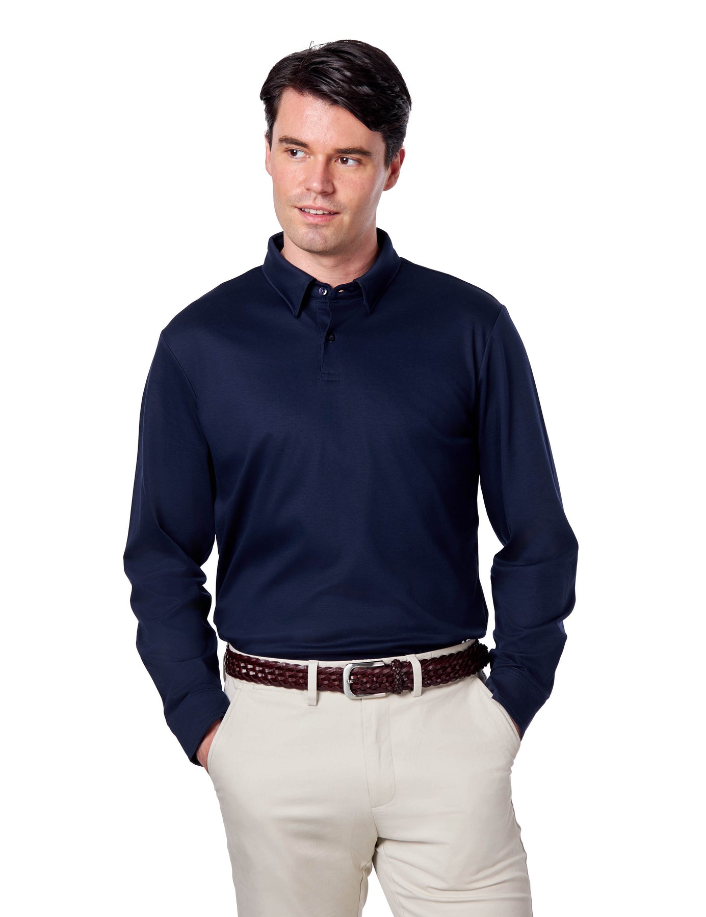 Mercerised Cotton Navy Polo Shirt Long Sleeve