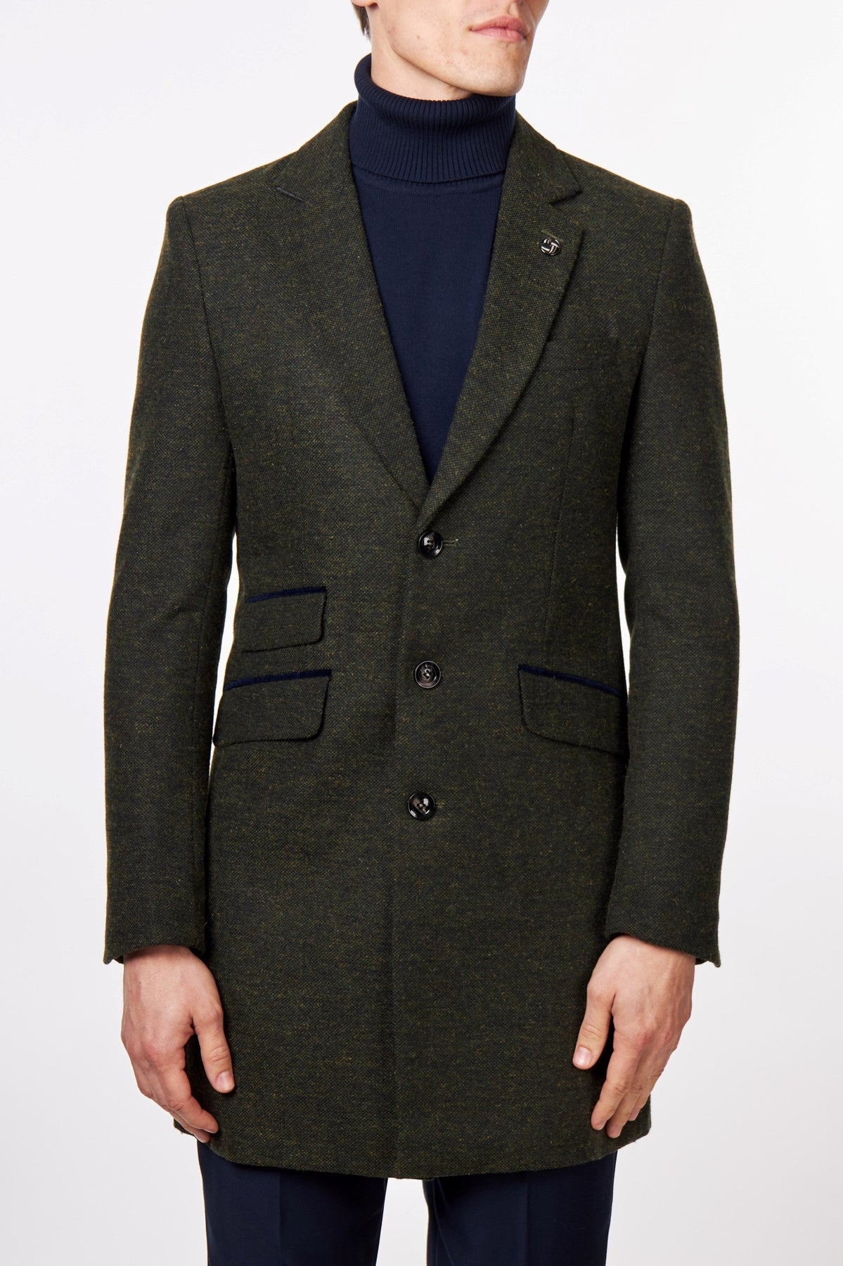 NESTOR – GRÜNER MANTEL AUS TWEED-WOLLMISCHUNG