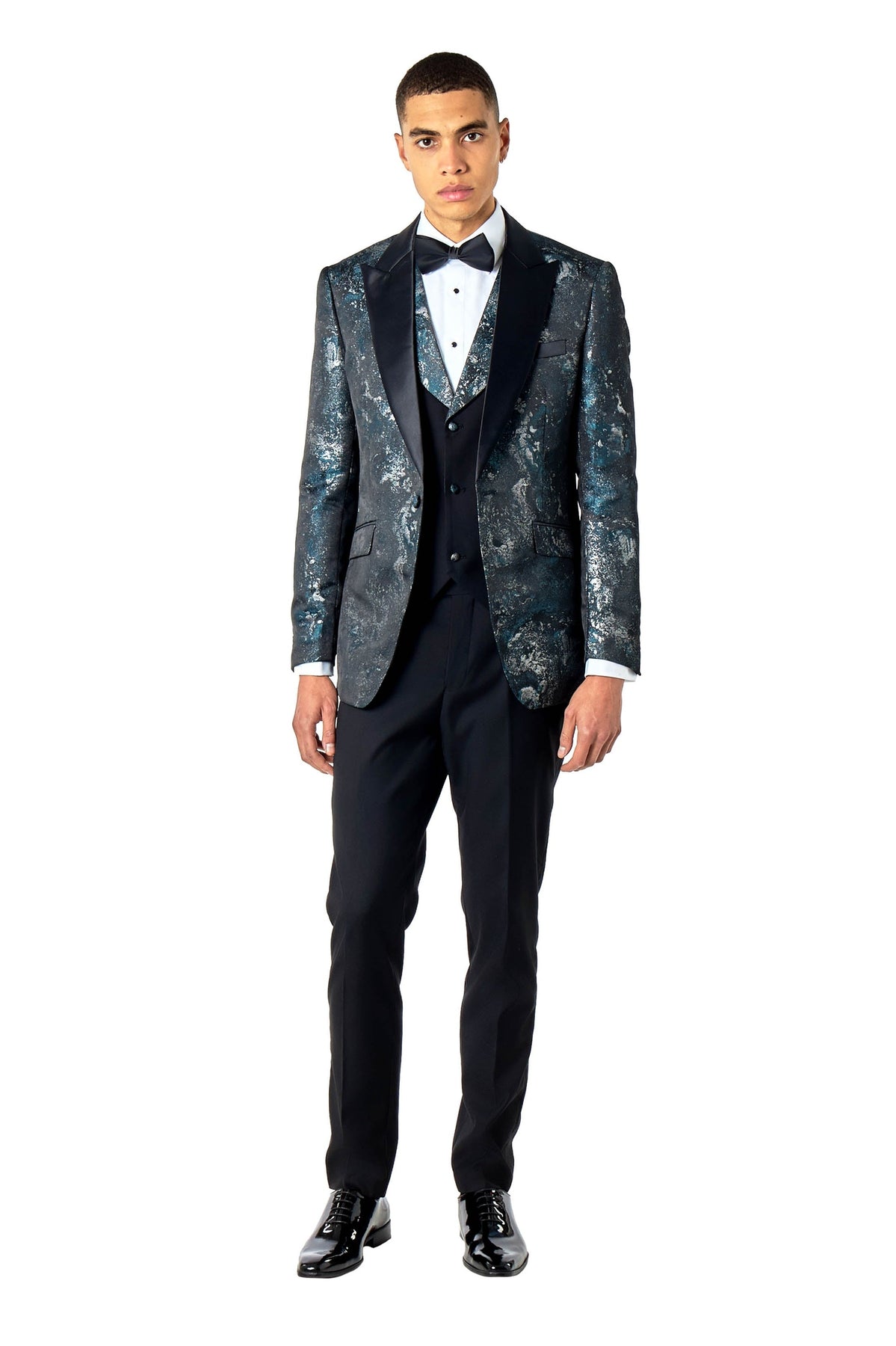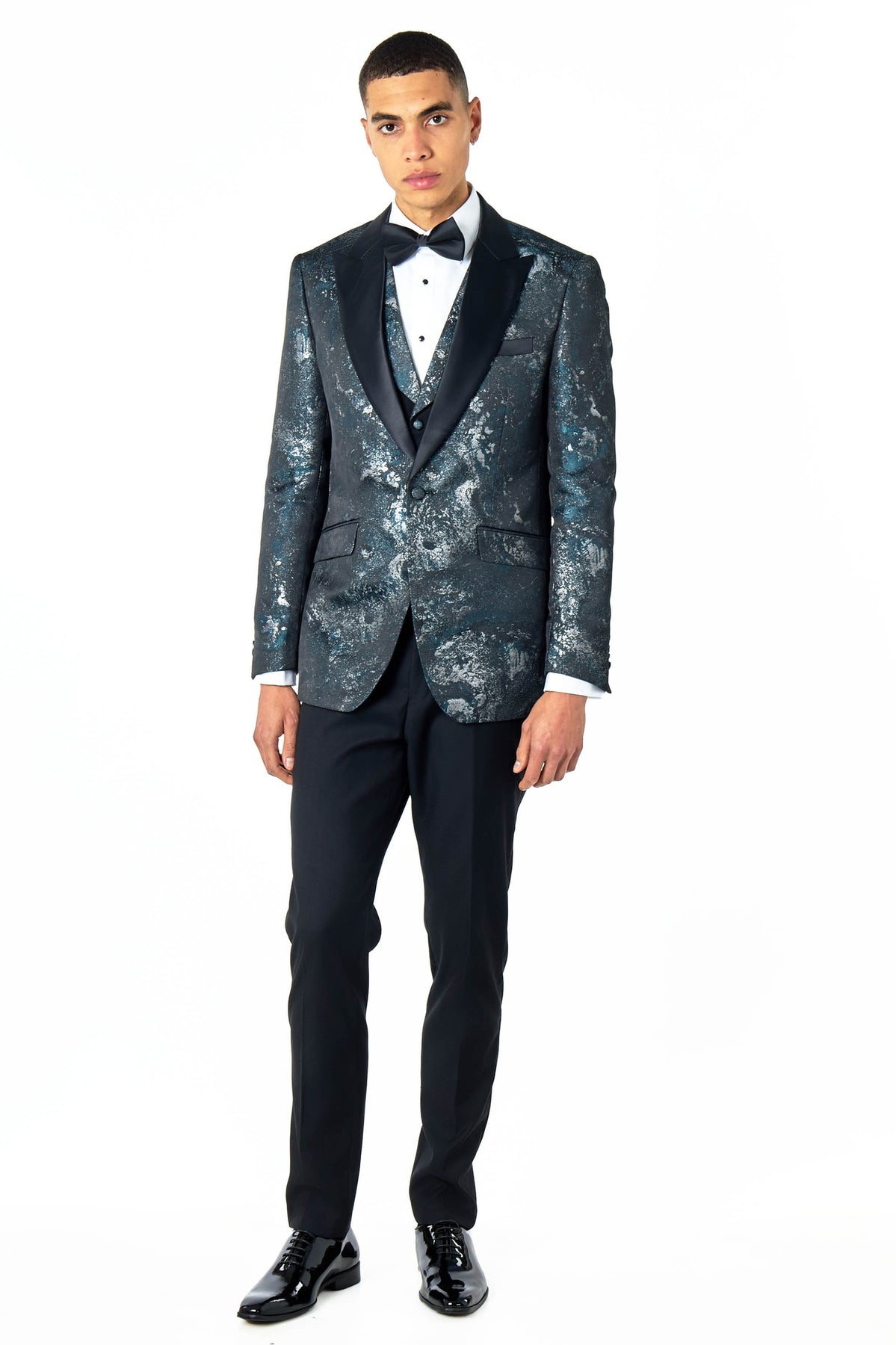 Wedding 3 Piece Suit Floral Glitter Print on Tailored Fit