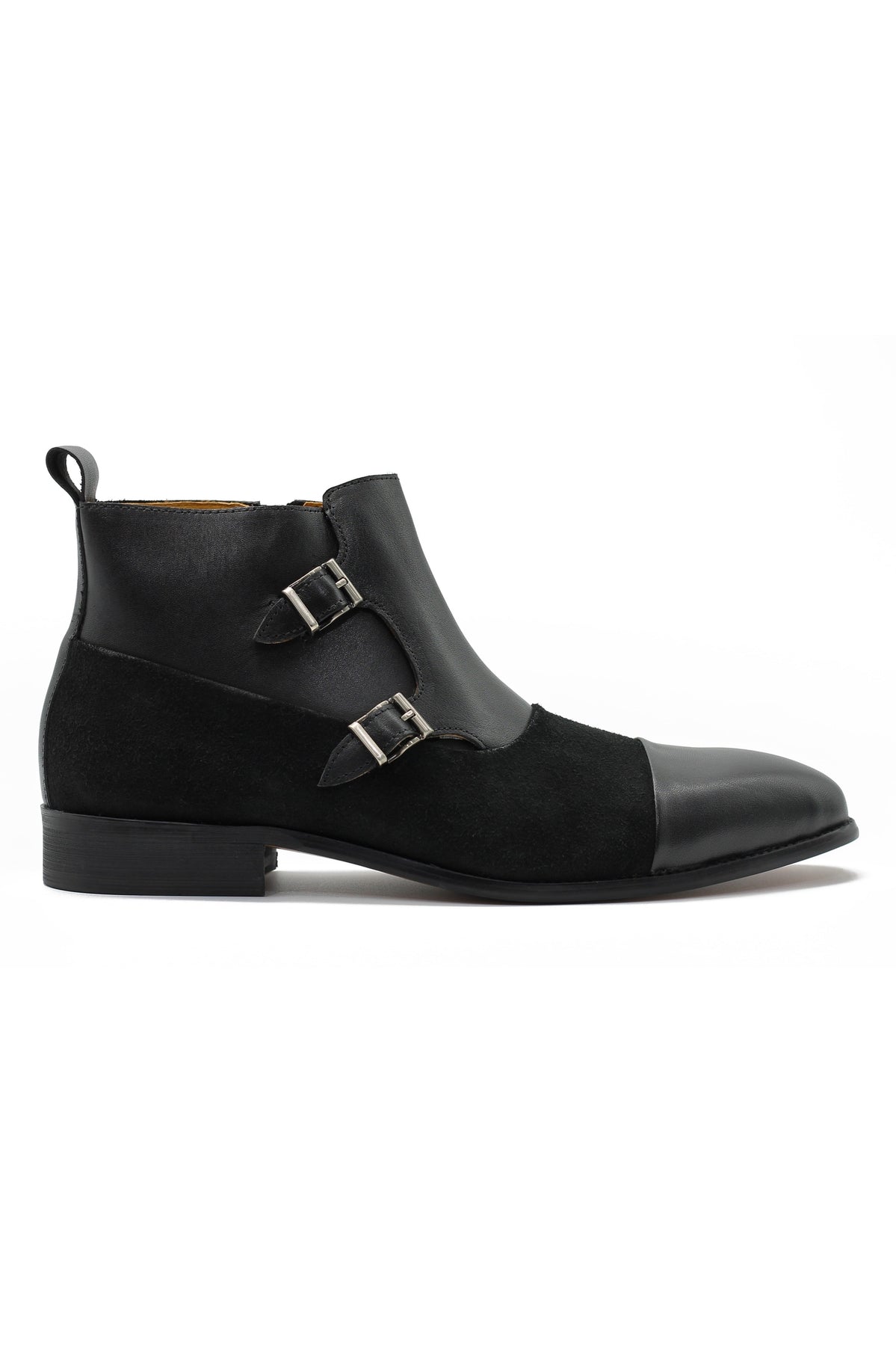 BLACK DOUBLE MONK LEATHER & SUEDE CHELSEA BOOTS