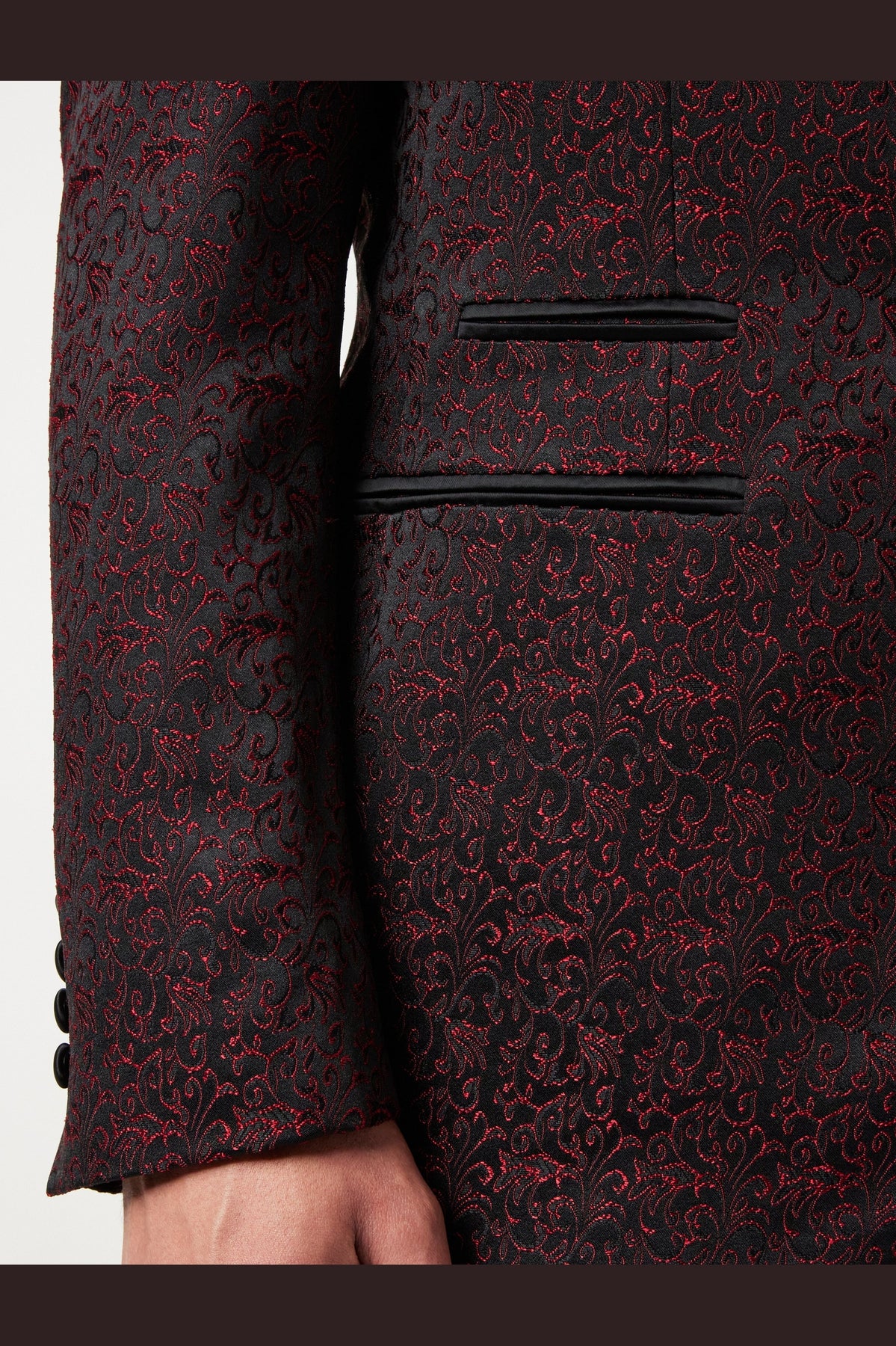 BRIAN - Veste de smoking rouge à imprimé jacquard fleuri avec gilet