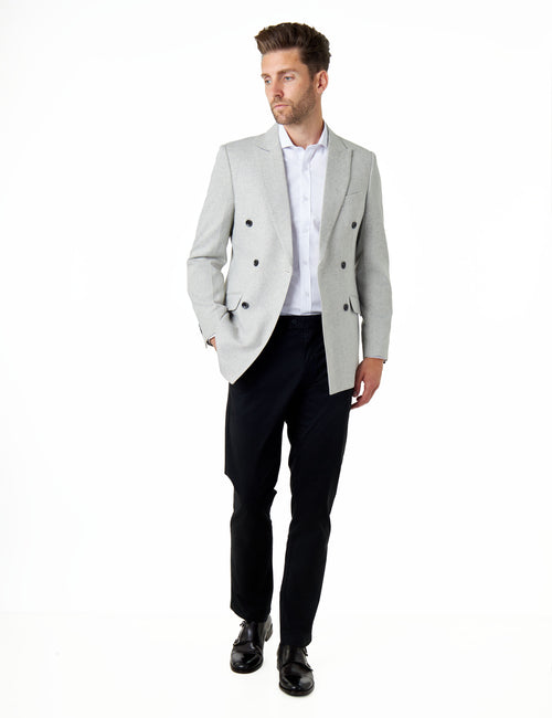 Double breasted design with a classic peak lapel and six front buttons. A versatile jacket every man needs.