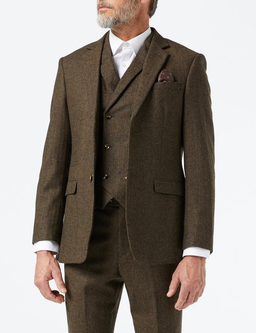 Cette veste ajustée présente un devant à deux boutons avec un revers à encoche et des poignets à quatre boutons. Livré avec le gilet et le pantalon assortis, le gilet comporte un double boutonnage sur le devant avec des cols à revers crantés, une ceinture de réglage dans le dos