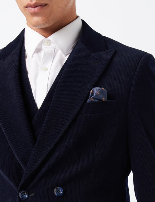 Classic vintage appeal of corduroy meets modern styling with their sharp stylish signature details, our Matthew corduroy Jacket and Waistcoat in black is perfect pick for the season