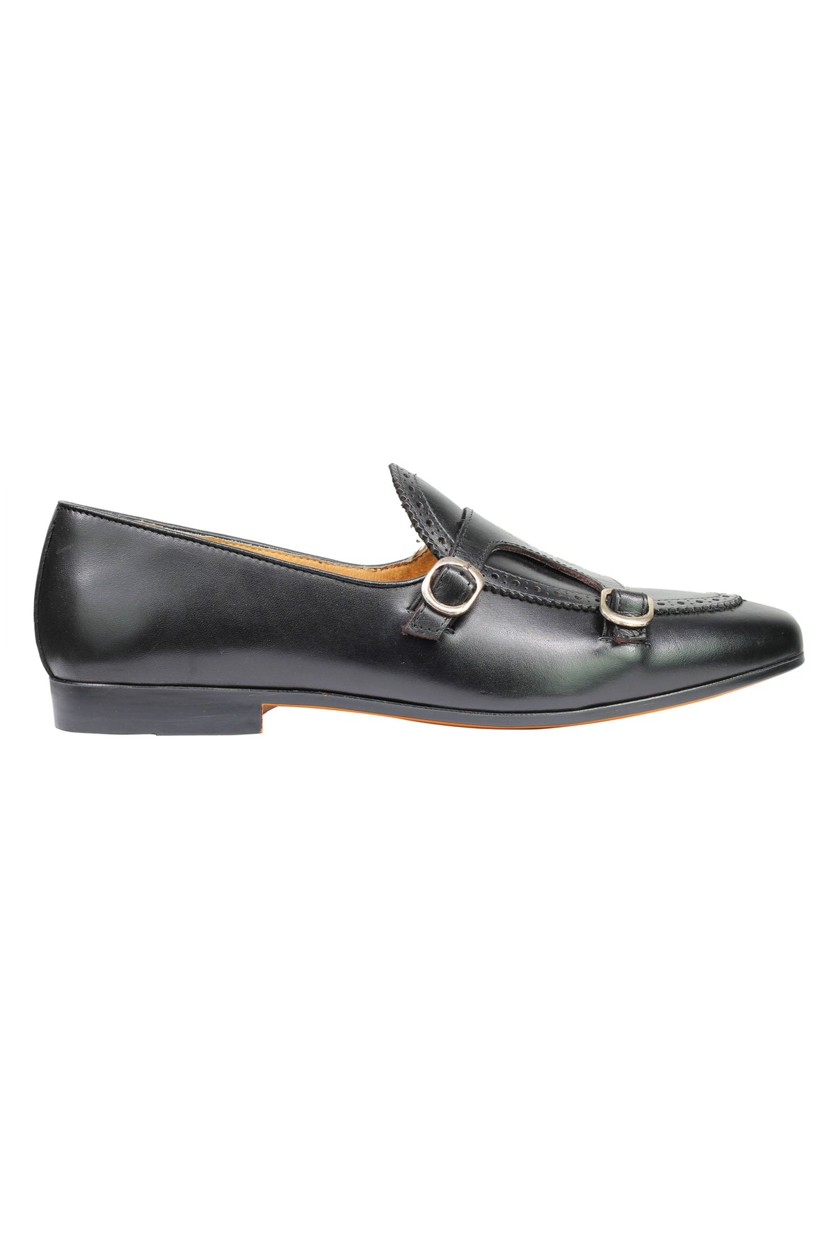 Chaussures à Double Boucle en Cuir Véritable Noir