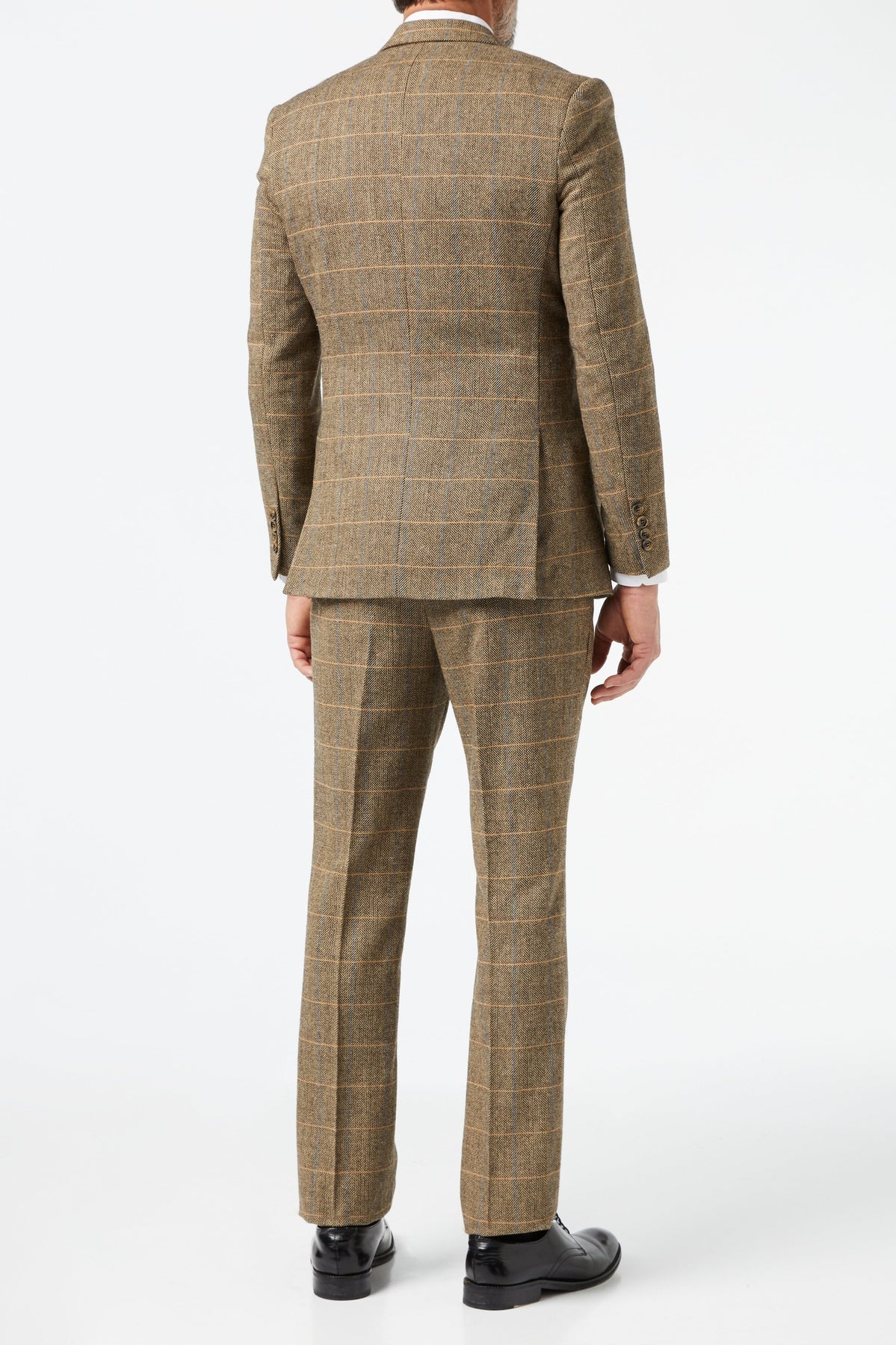 VESTE ET GILET DE COSTUME EN TWEED CHECK HERRINGBONE TAN