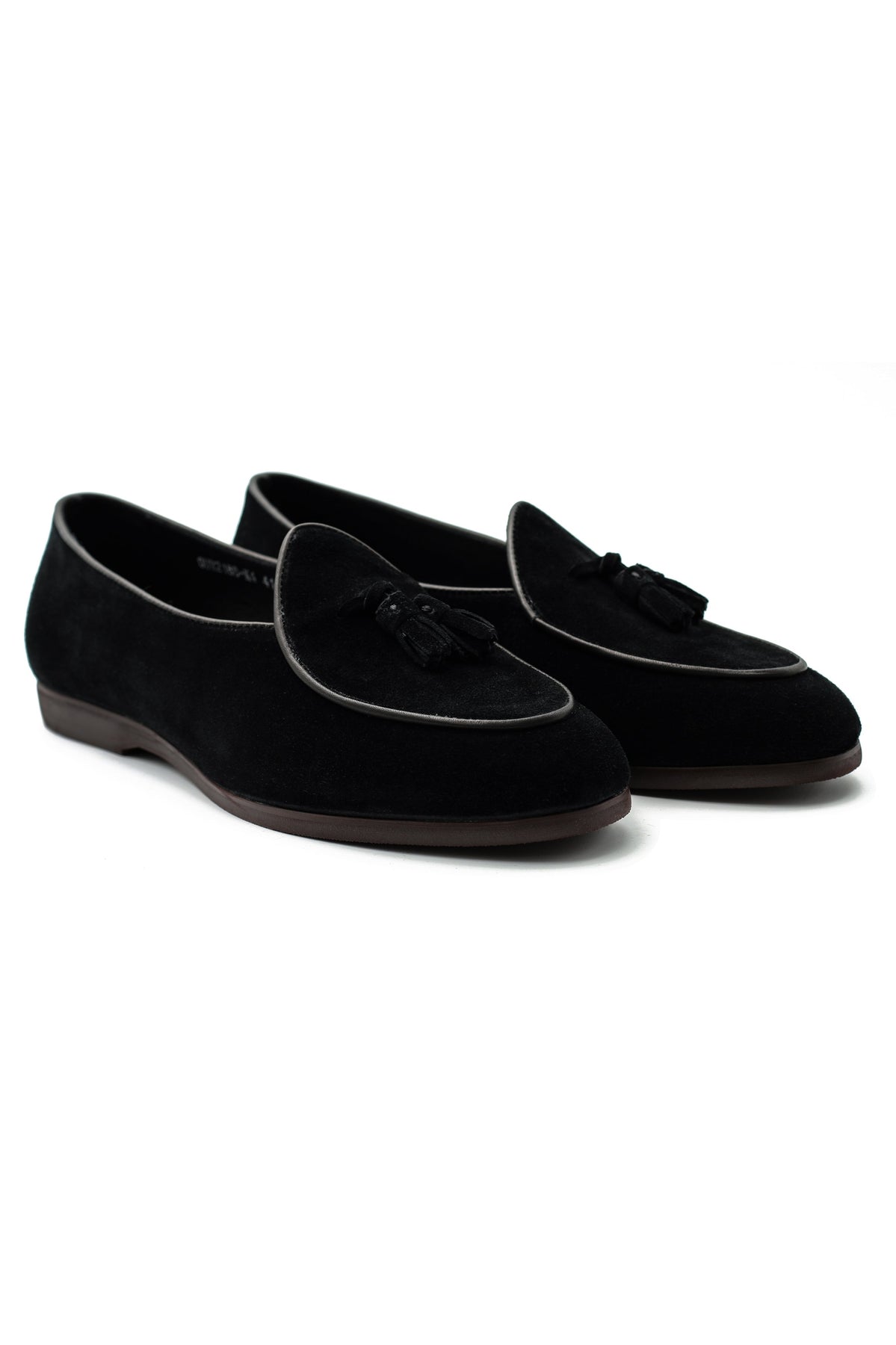 Elevate your style with our Black Suede Slippers, a sleek and sophisticated take on the iconic loafer. Crafted from soft, smooth suede leather, these slippers feature elegant leather edge trims and classic tassels on the front, exuding effortless style and refinement.
