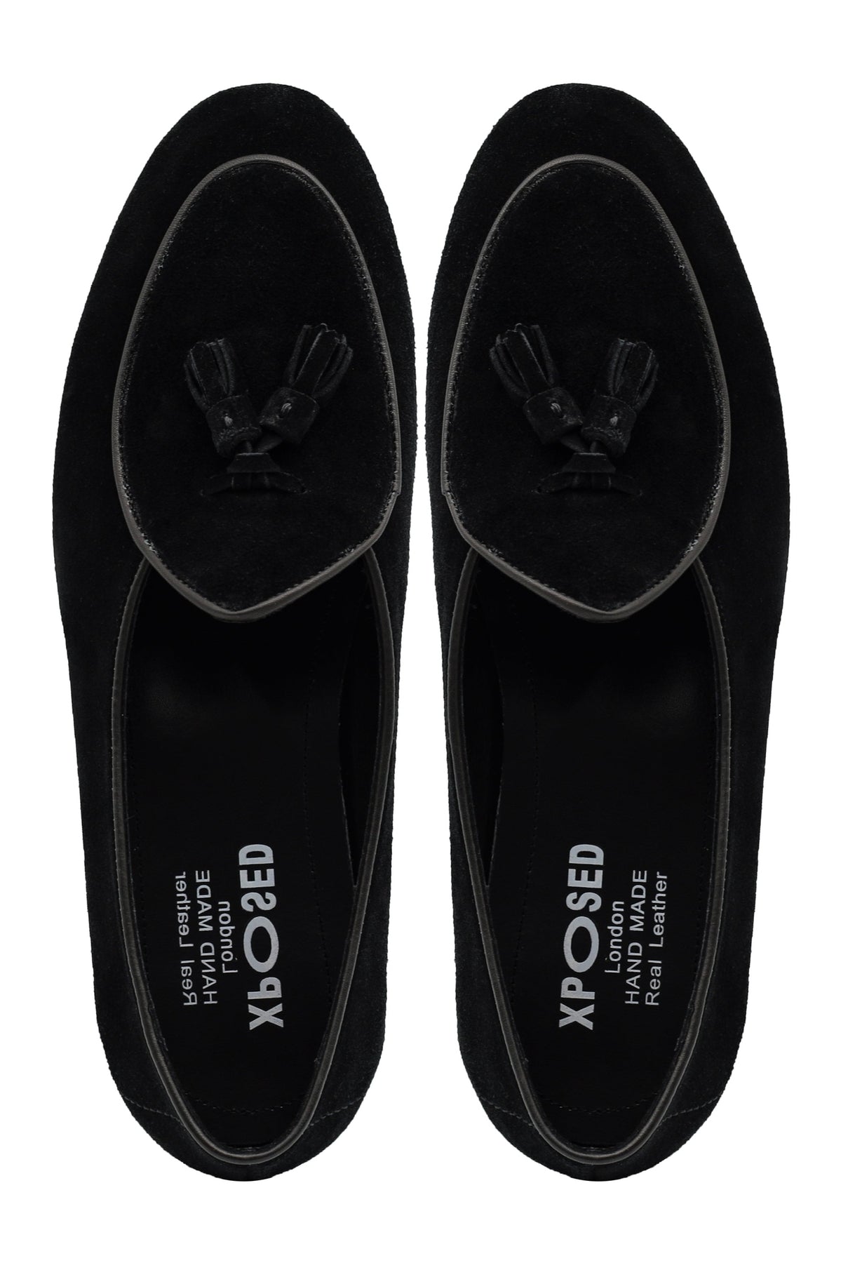 BLACK SOFT SUEDE TASSEL SLIPPERS