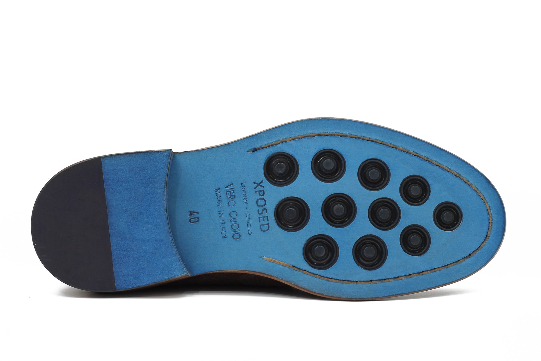Each shoe is produced in Italy by expert craftsmen with years of experience. Each single product undergoes a process of different techniques all completed by skilled artisans, shoes are made to last and to just get better looking and more comfortable over the time