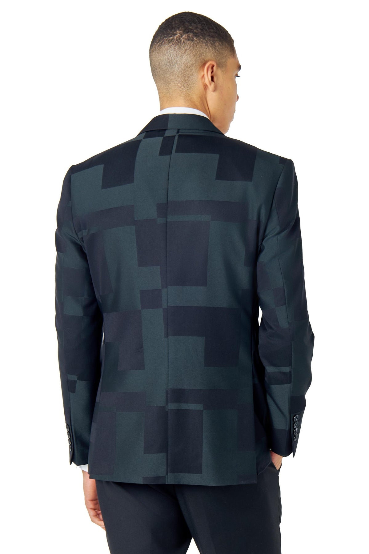 DARK GREEN GEO PATTERN DETAILED SUIT JACKET