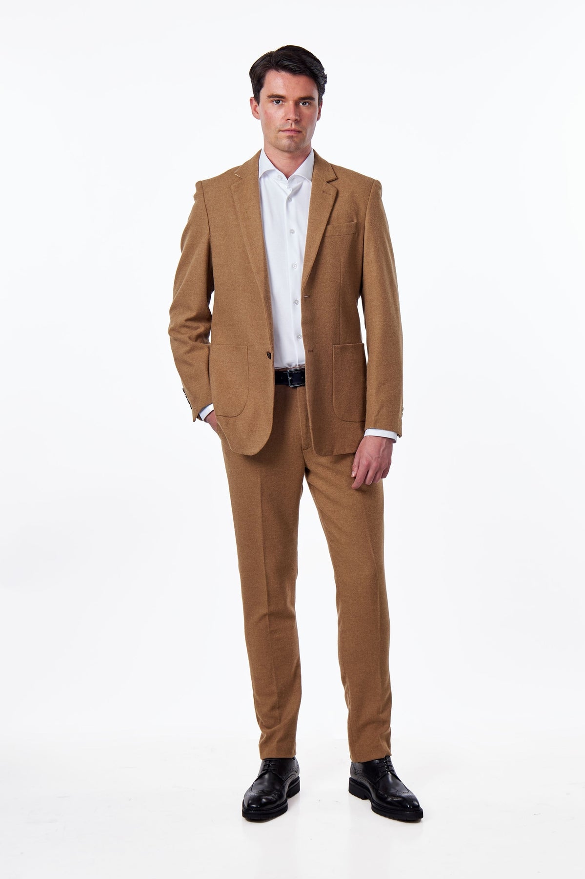 FLANNEL WOOL BLEND 2-PIECE SUIT TAILORED FIT