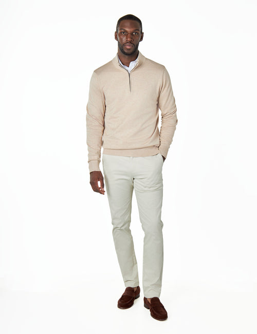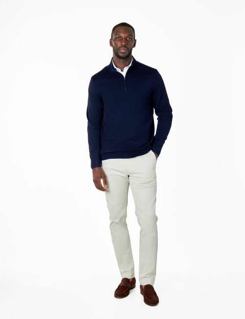 The stand up collar with a zip closure adds a versatile touch, allowing you to adjust your look from casual to smart with ease. Whether layered over a shirt for a polished appearance or worn alone for a relaxed vibe, this jumper is a must-have for any season.