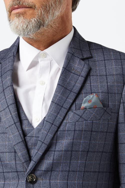HECTOR - BLUE WINDOWPANE CHECK JACKET & WAISTCOAT