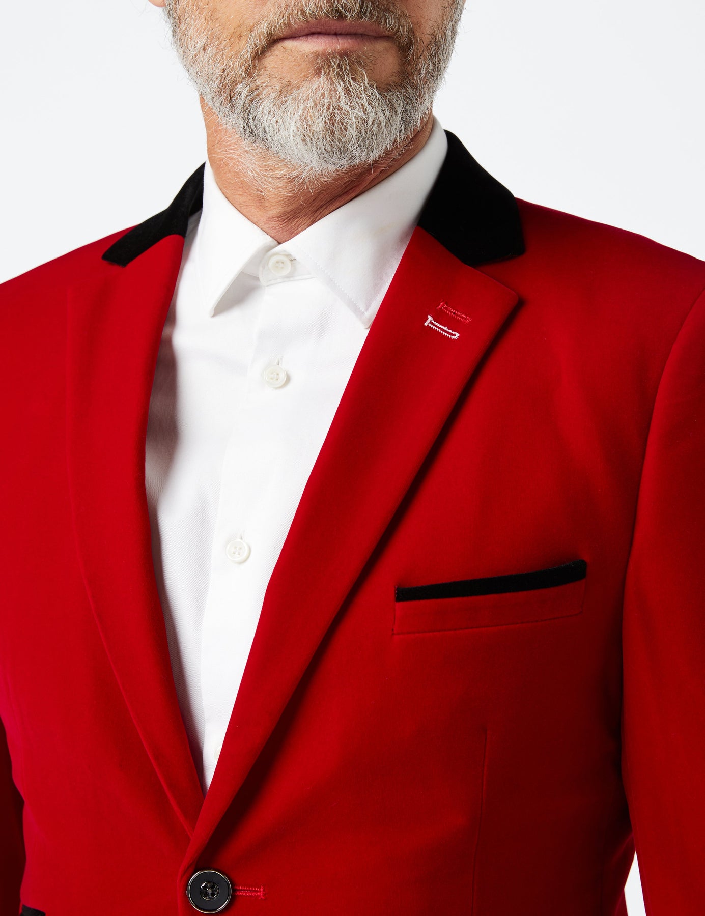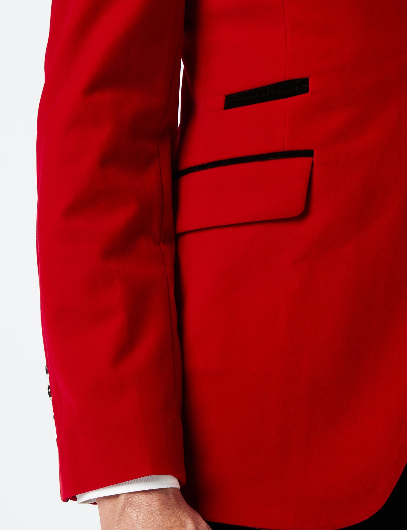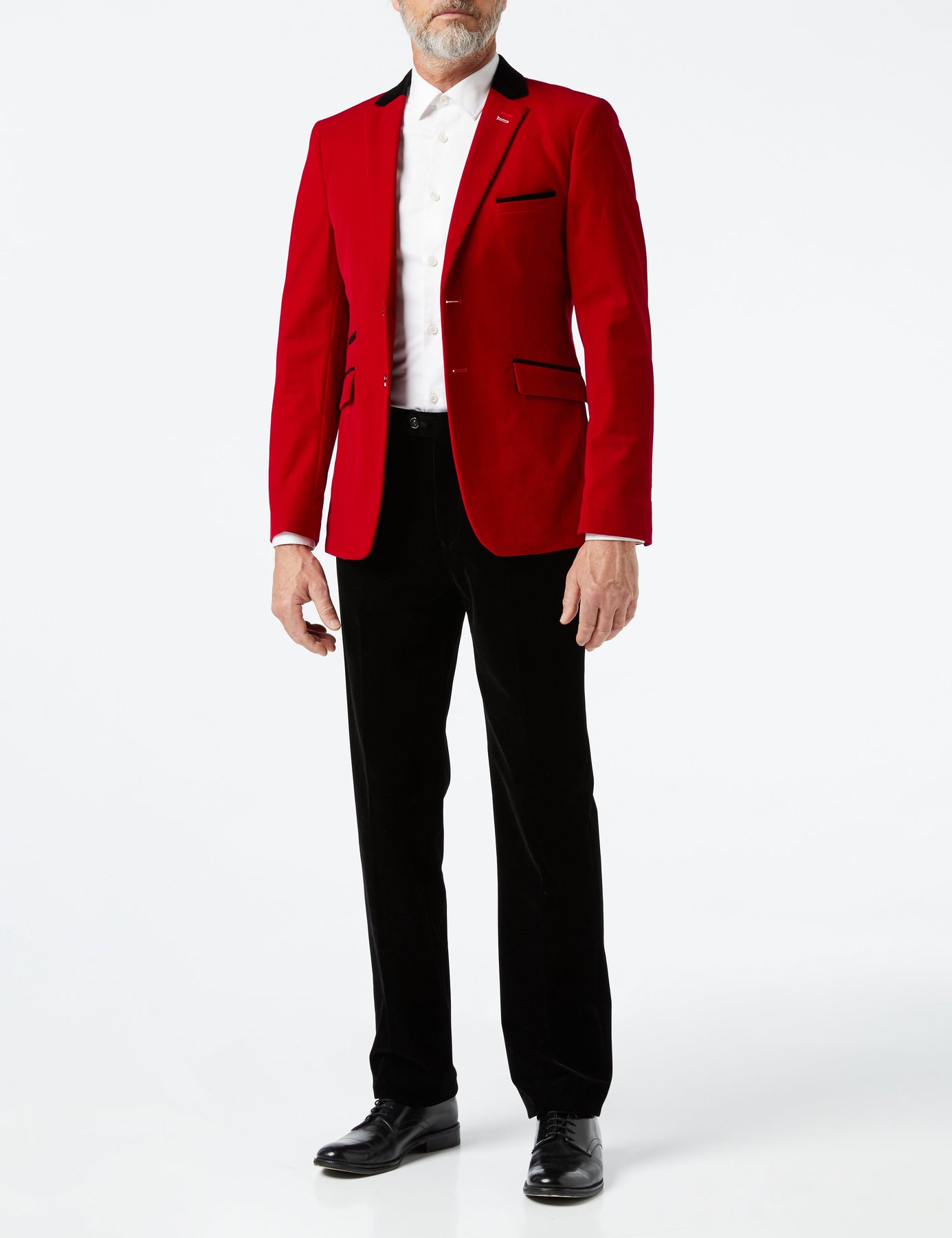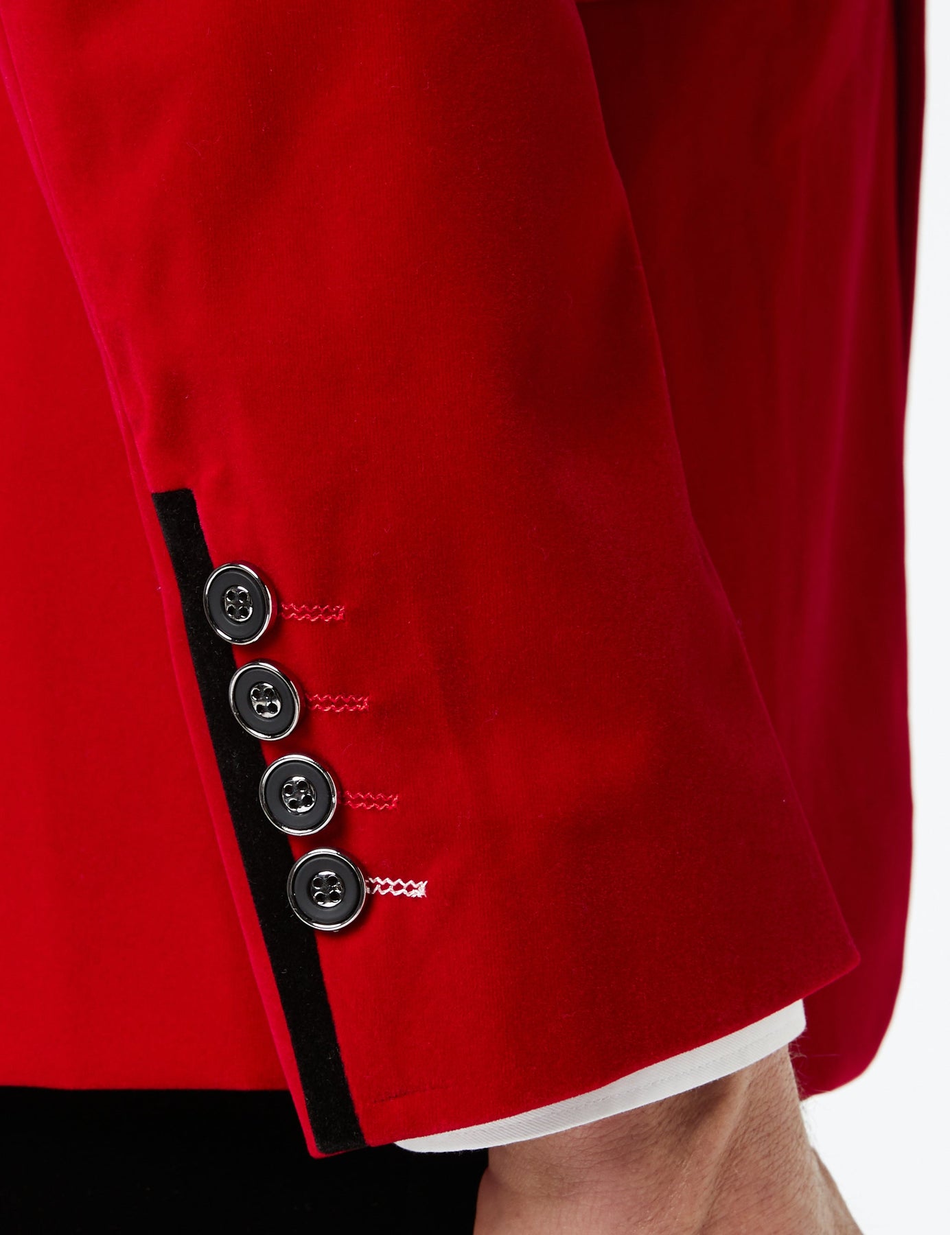 Features Contrasting Velvet Collars, Trims on Pockets, 2 Button Front,