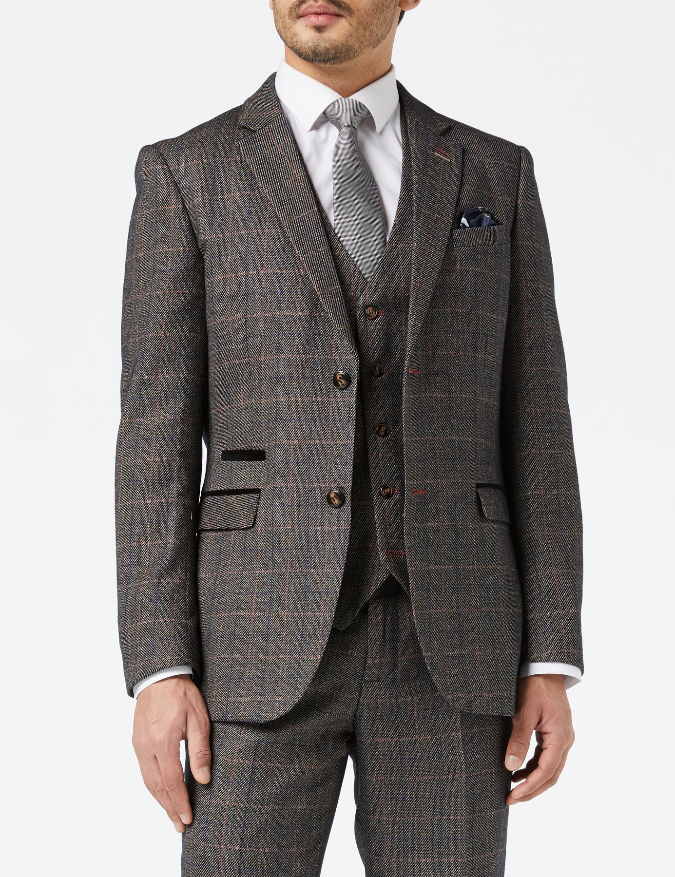 Men's Vintage Styled Tweed Check Suit Jacket in Brown and Navy by XPOSED London