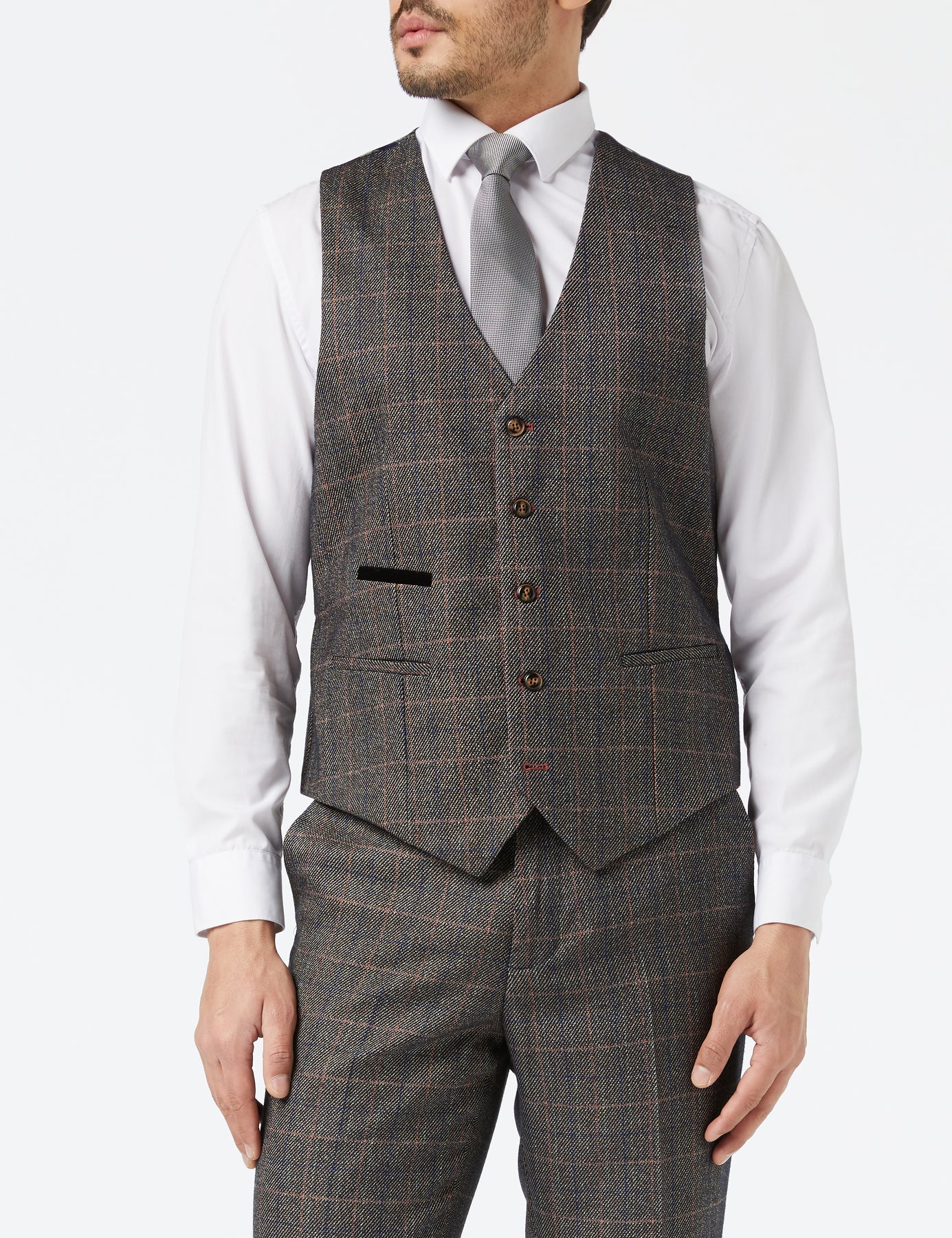 JULES - BROWN TWEED CHECK JACKET & WAISTCOAT