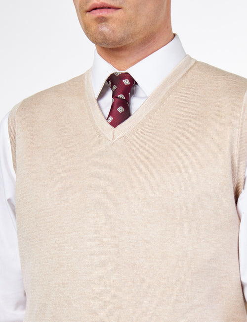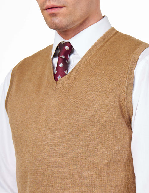 This sleeveless vest is versatile, classic and suave. It features details like ribbed endings at the hem, traditional V-neck
