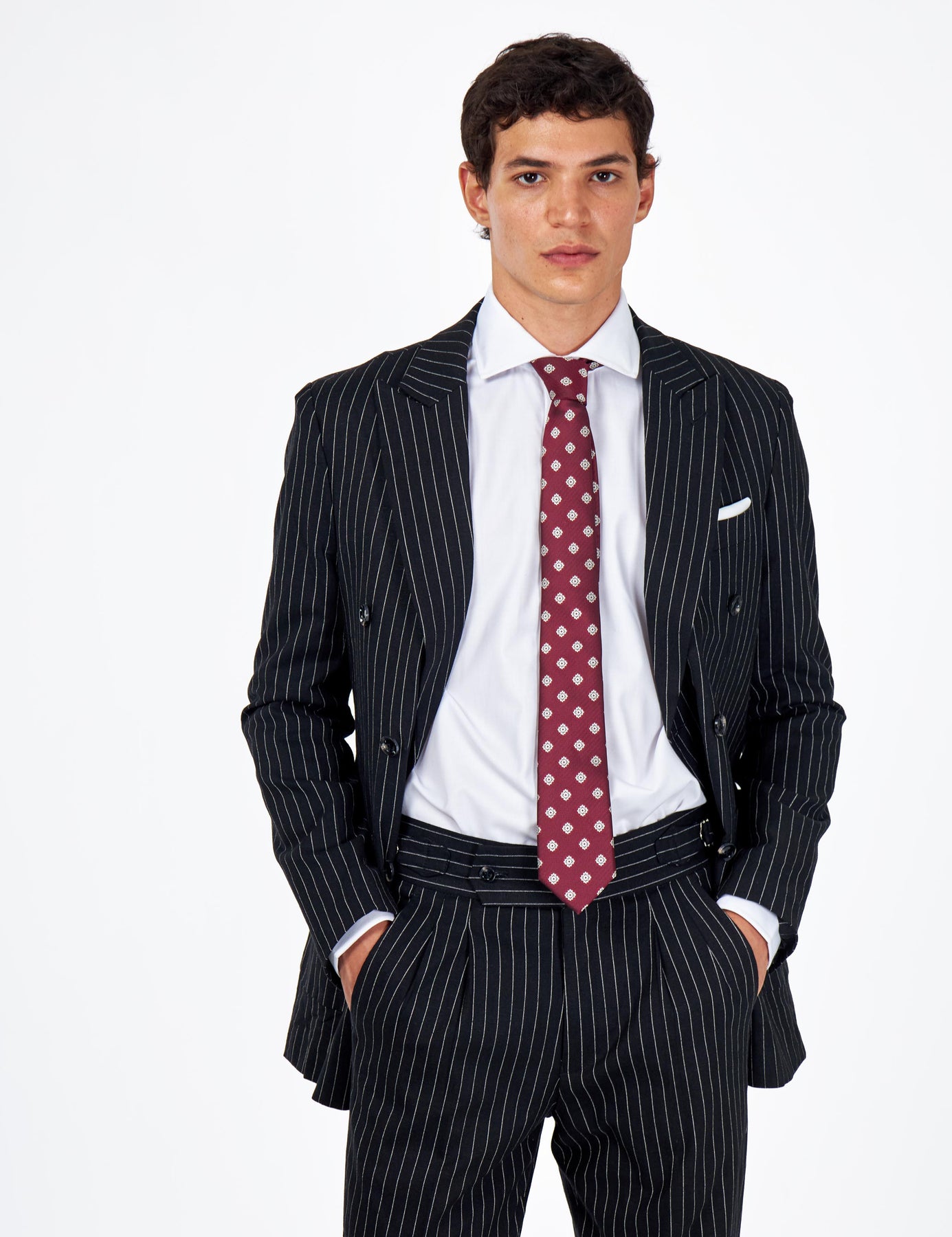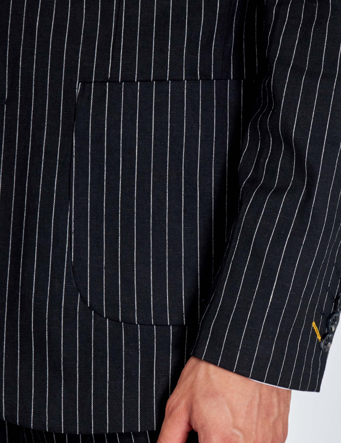 Tailored Fit – a modern cut between slim and regular for a sharp look with comfortable ease. Classic black base with white stripes for a bold yet refined look. This timeless combination enhances the linen's natural texture while staying sharp and versatile for both day and evening wear.
