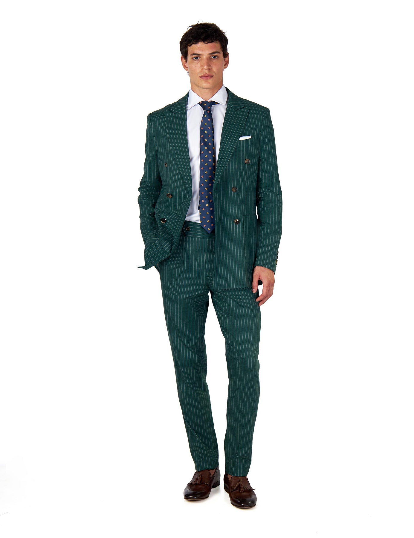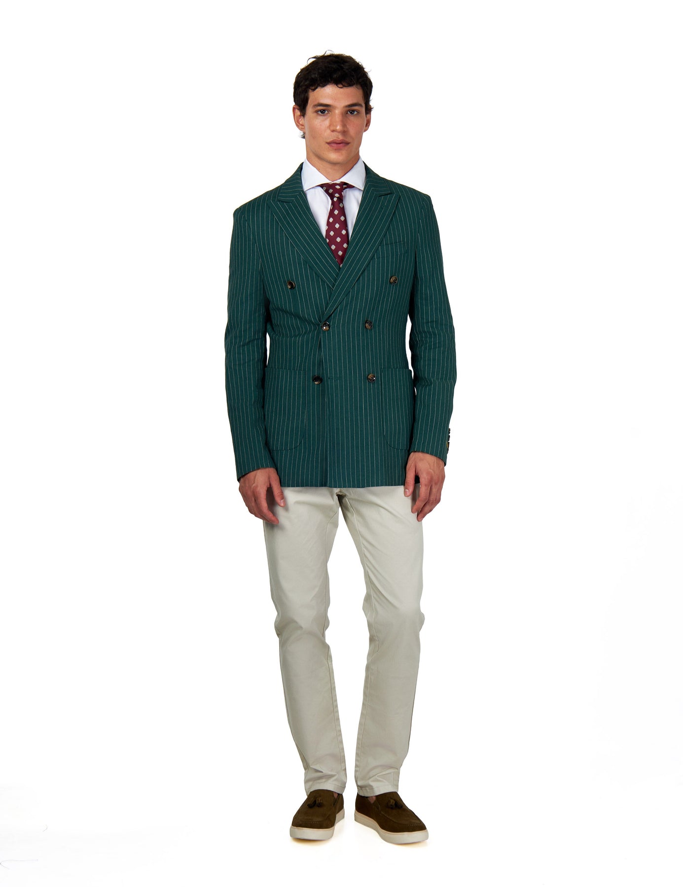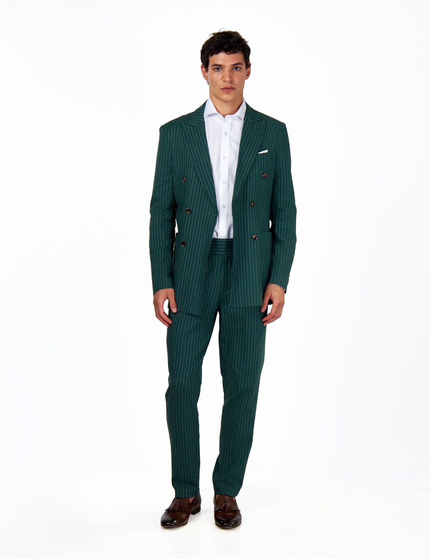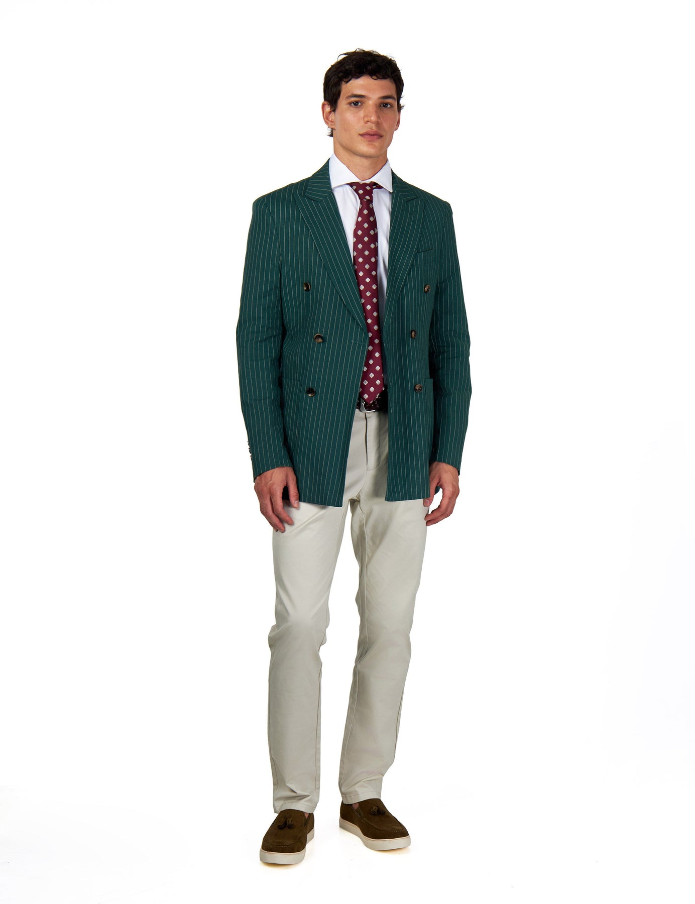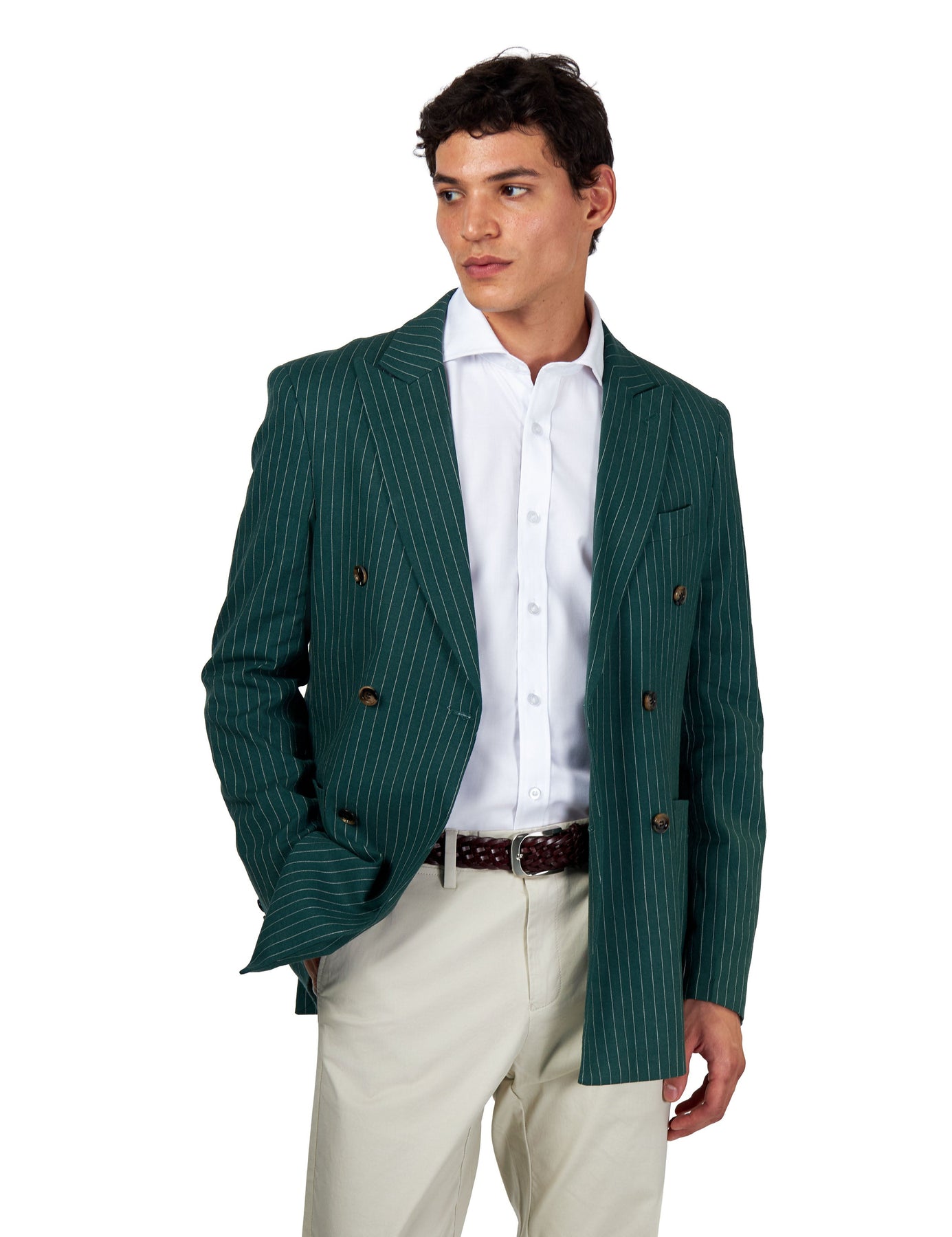 Tailored Fit – a modern cut between slim and regular for a sharp look with comfortable ease. Classic forest green base with white stripes for a bold yet refined look. This timeless combination enhances the linen's natural texture while staying sharp and versatile for both day and evening wear.