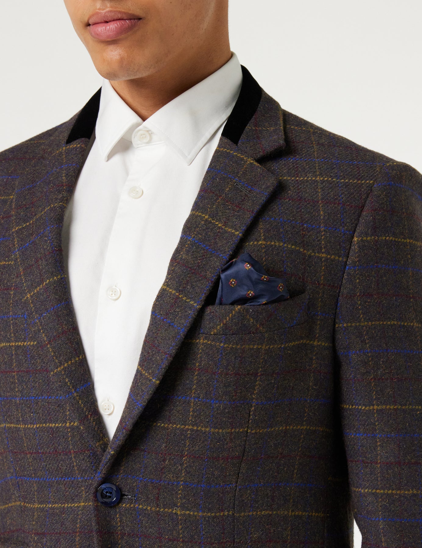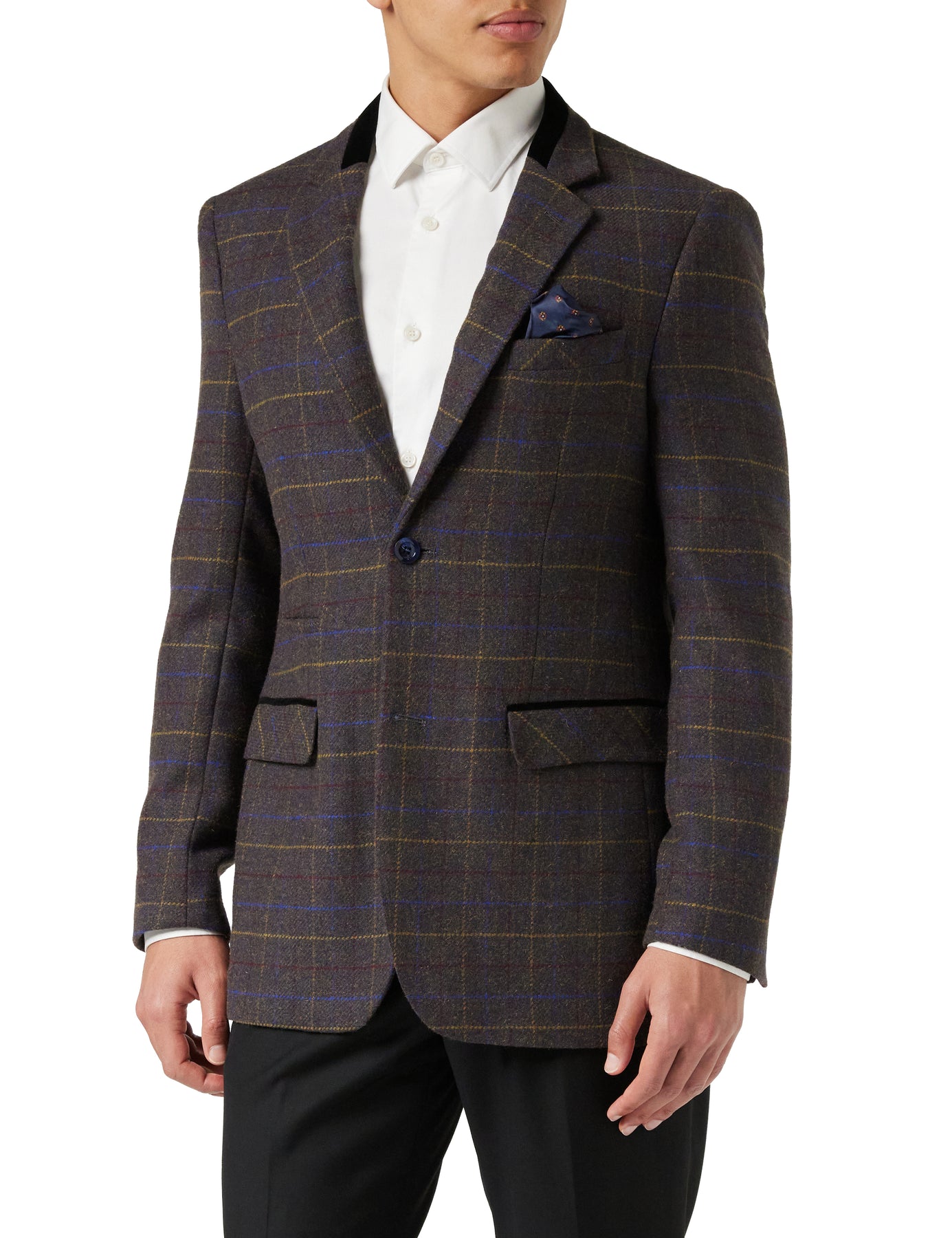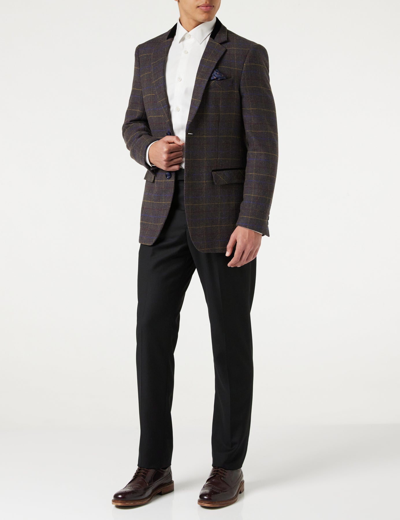 MADISON - BROWN TWEED CHECK PLAIN BLAZER