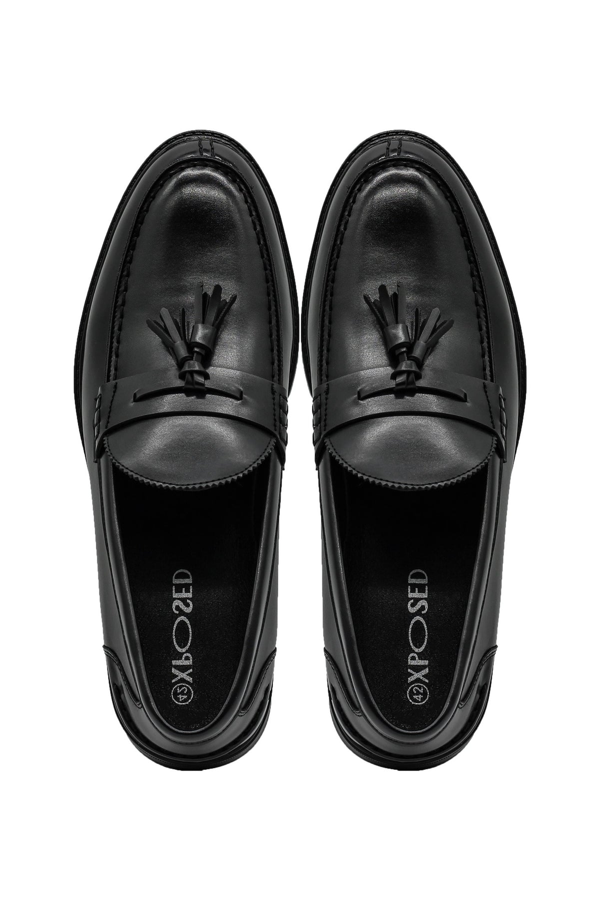 Step into timeless style with these Men’s Black Faux Leather Tassel Loafers by XPOSED, they blend comfort and sophistication — ideal for both formal and smart-casual looks.