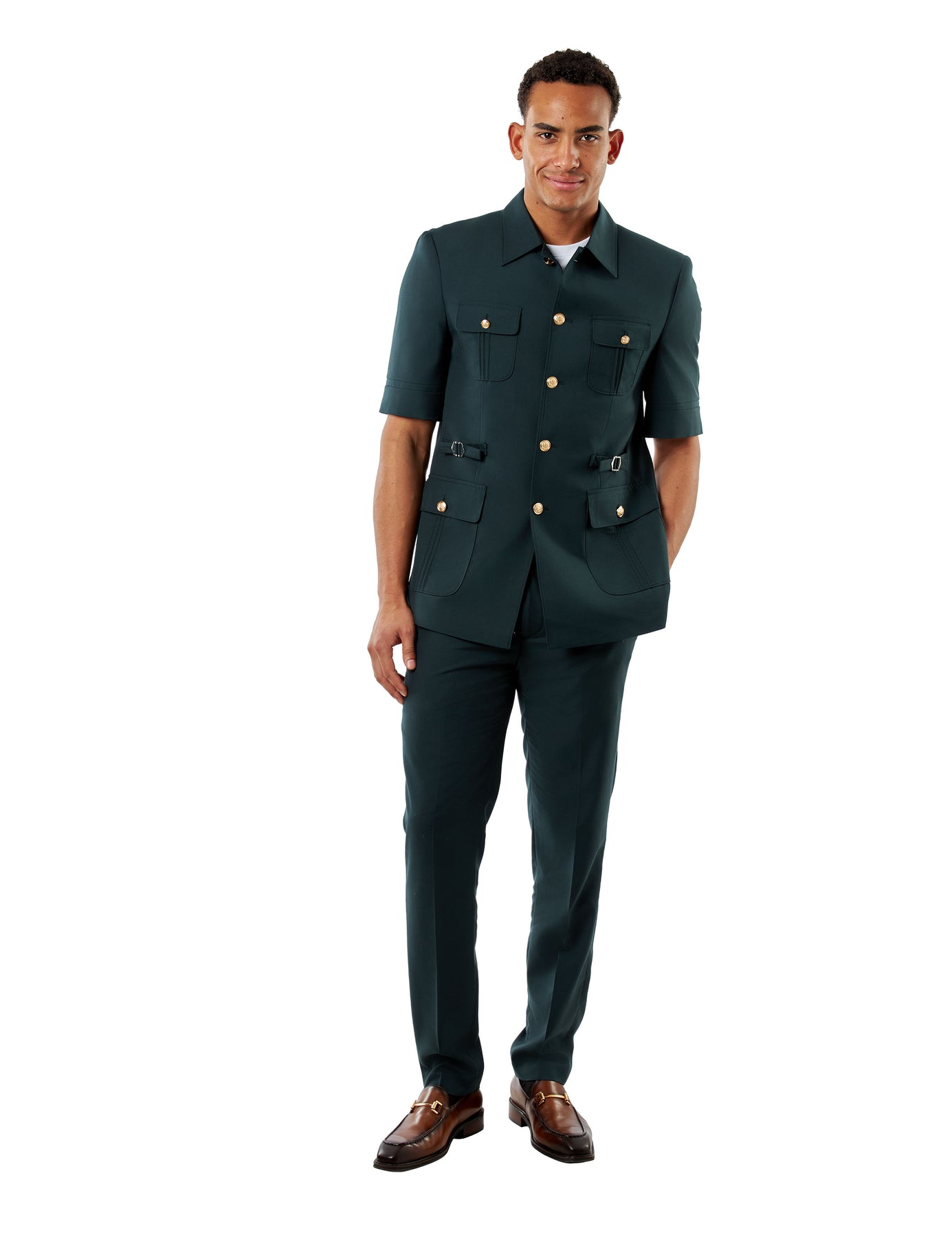 Deep Forest Green Safari Tailored 2 Piece Suit | Short Sleeve