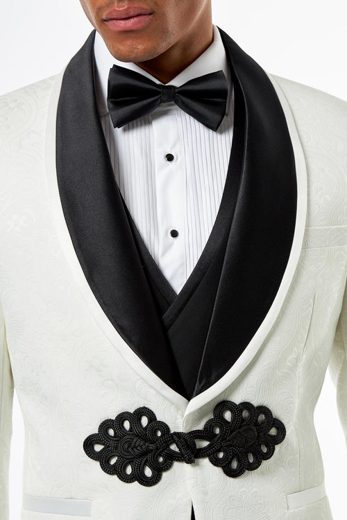 Ivory Jacquard Satin Trim Tuxedo 2-Piece Wedding Suit