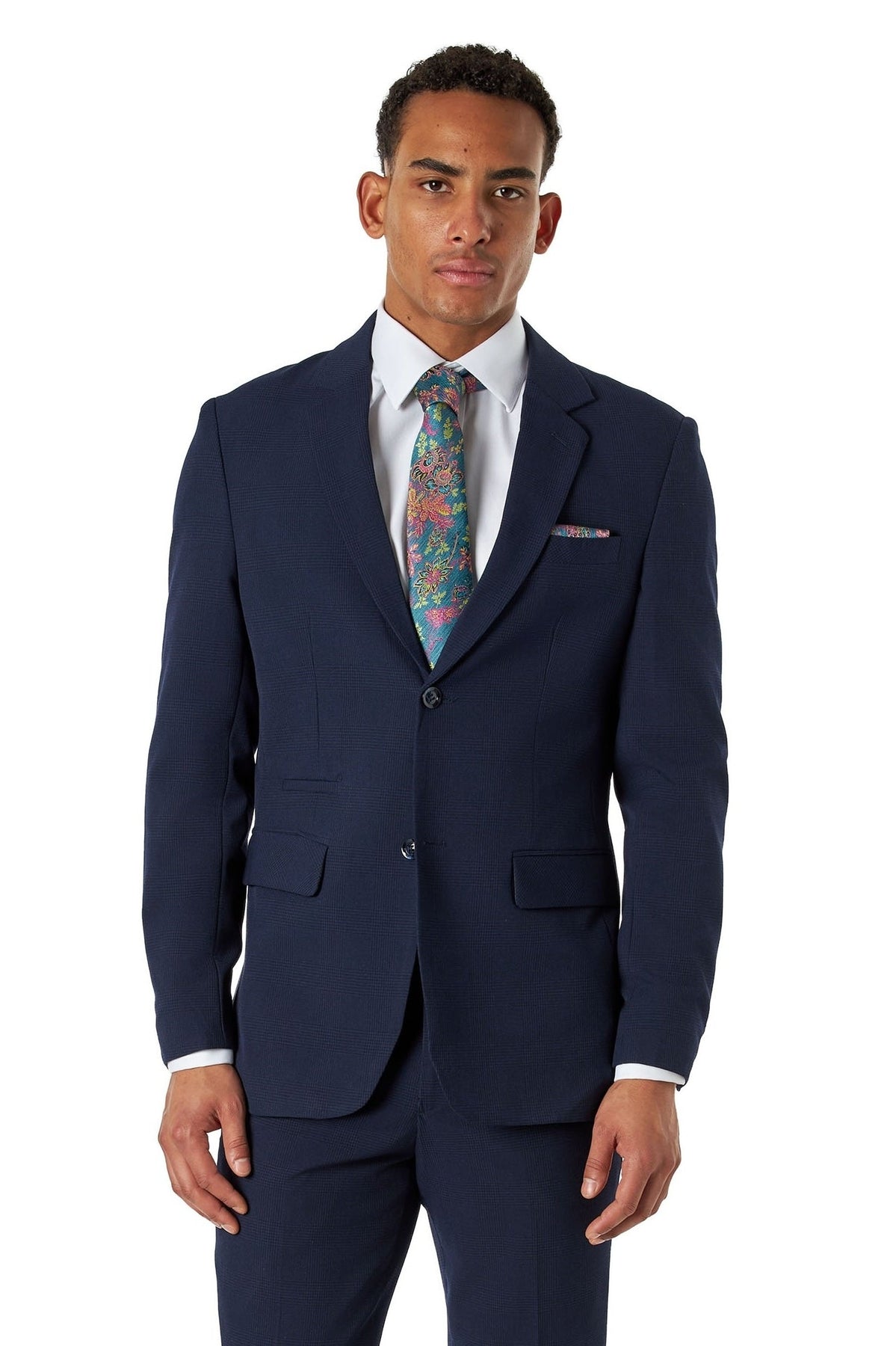 Navy Prince of Wales Check Tailored Fit Single-Breasted Suit Jacket