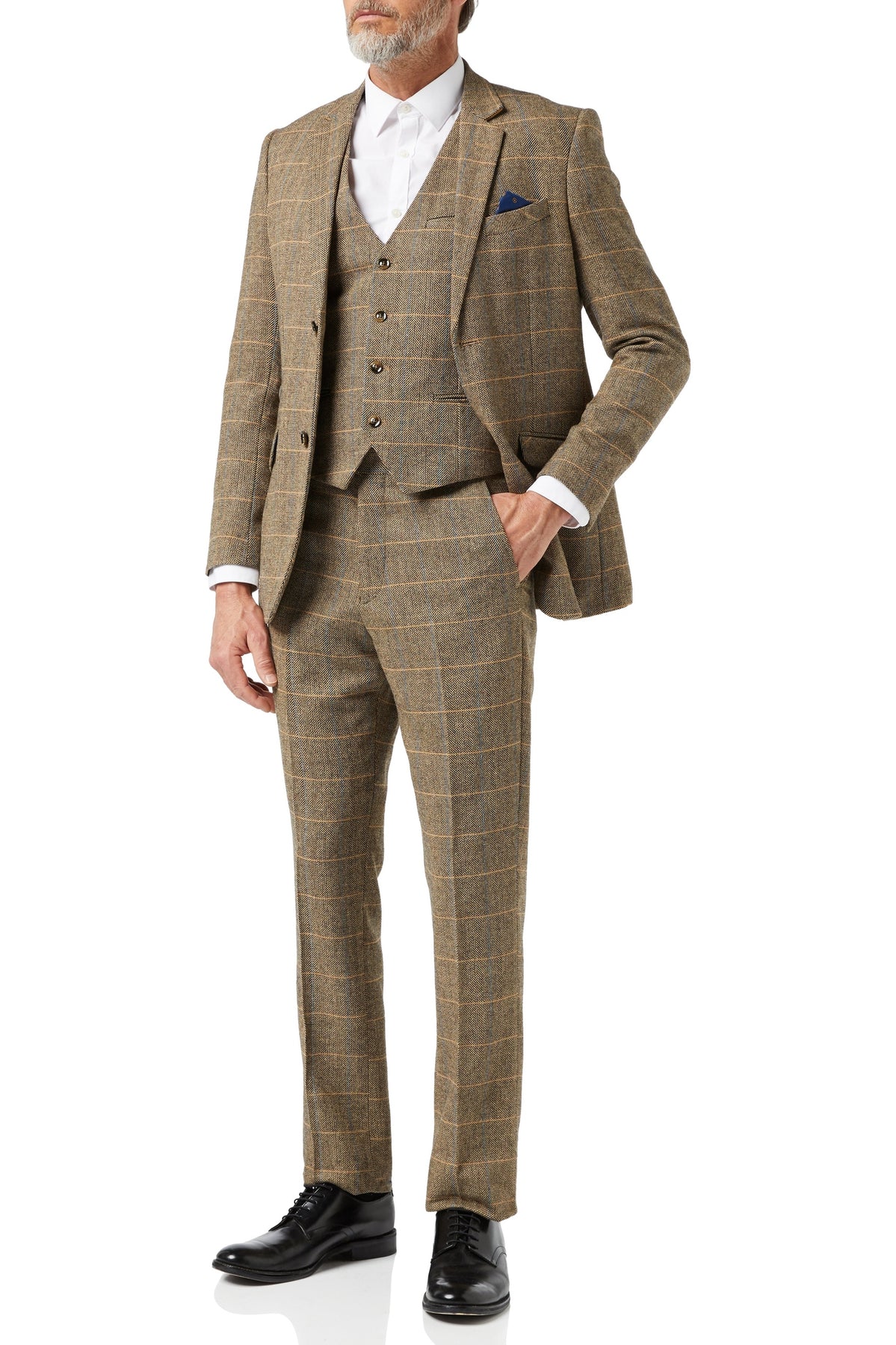 MENS TWEED TAN HERRINGBONE CHECKS TAILORED FIT WAISTCOAT