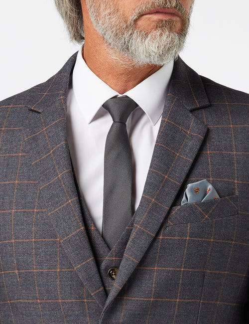ORANGE WINDOW CHECK ON BLUE JACKET & WAISTCOAT
