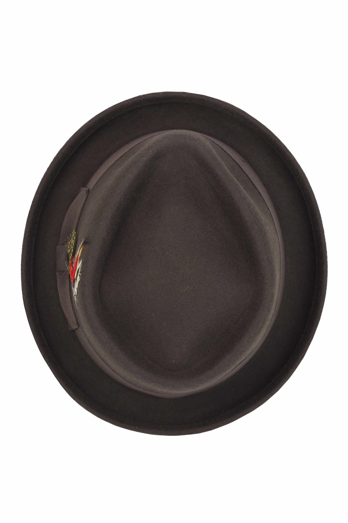 Pork Pie Brown Hat 100% Wool Felt Diamond Shape Crown - DC-310