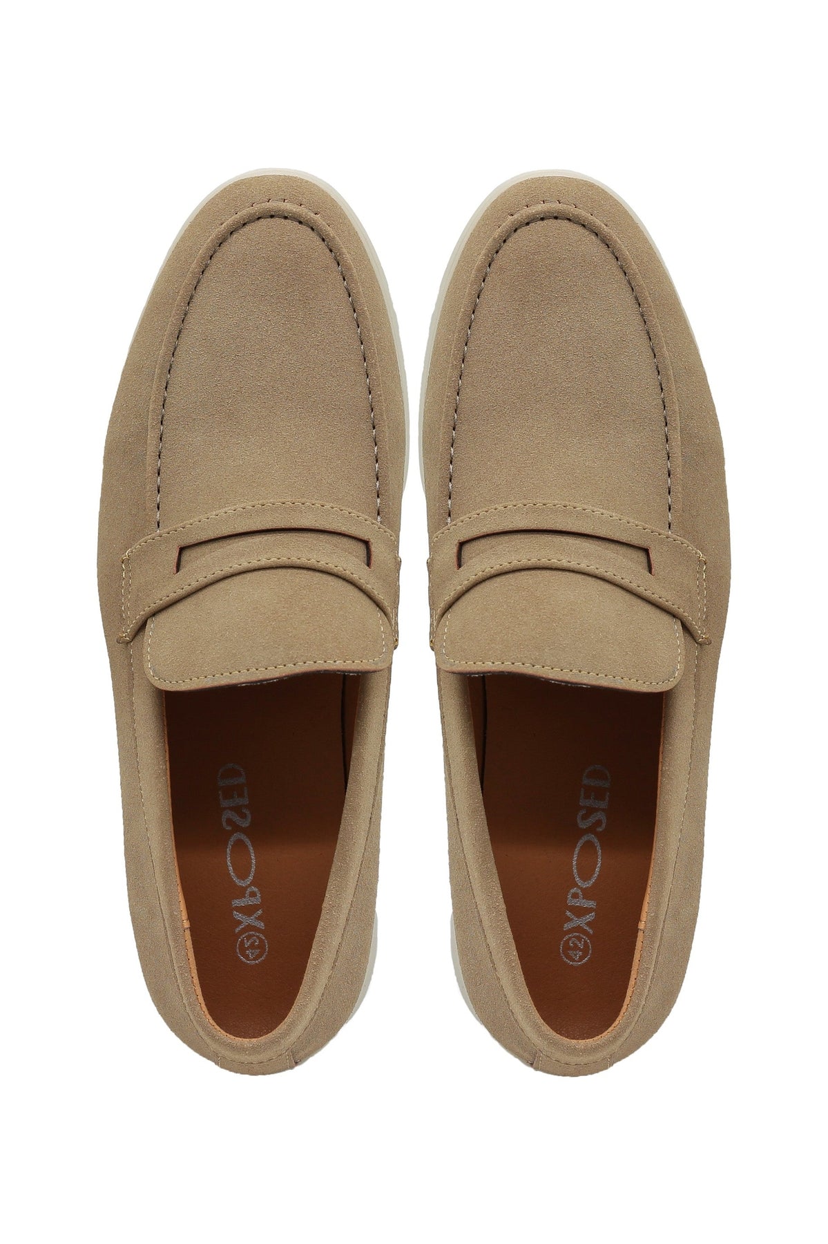 Step into summer sophistication with these Men’s Sand Faux Suede Penny Loafers by XPOSED. Lightweight, breathable, and effortlessly stylish for smart-casual wear.