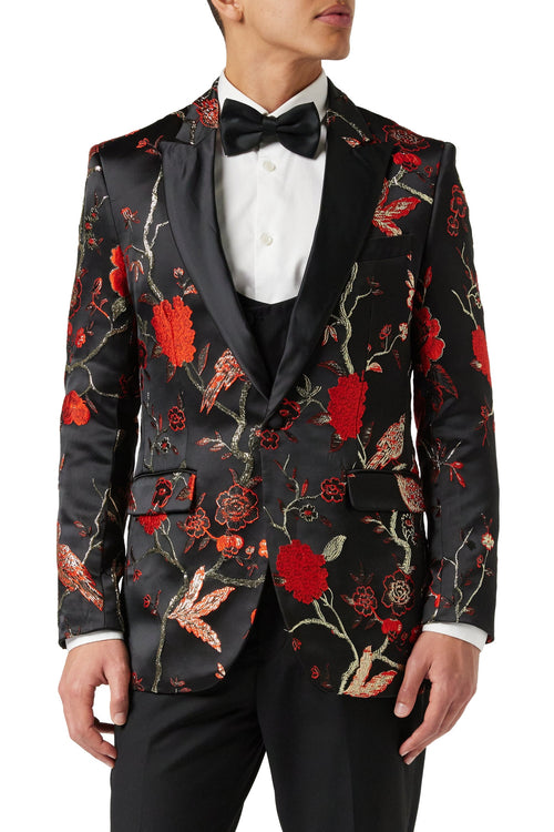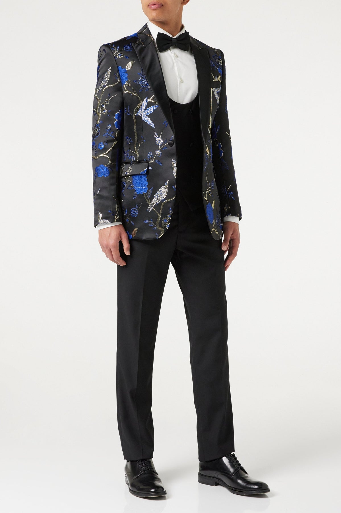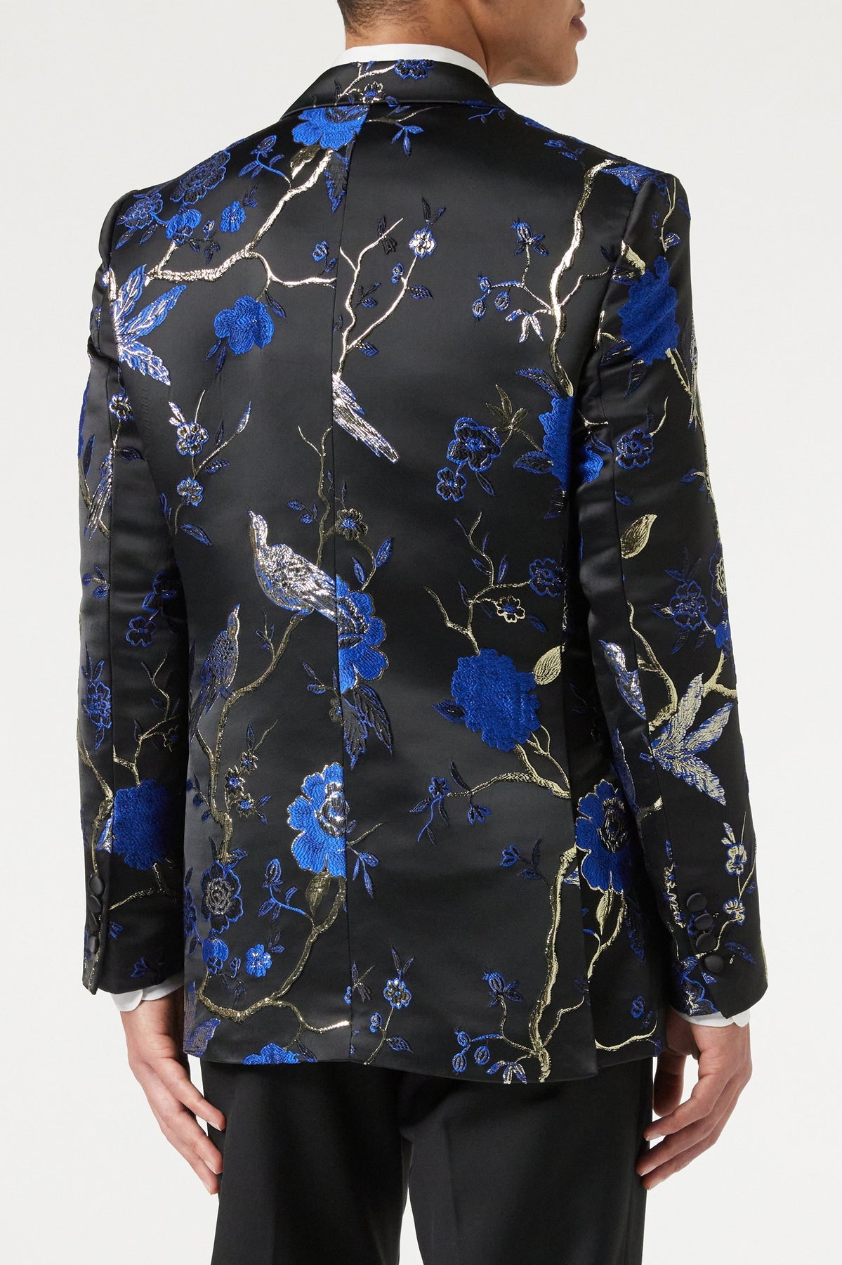 TUXEDO BLACK BLUE FLORAL BLAZER