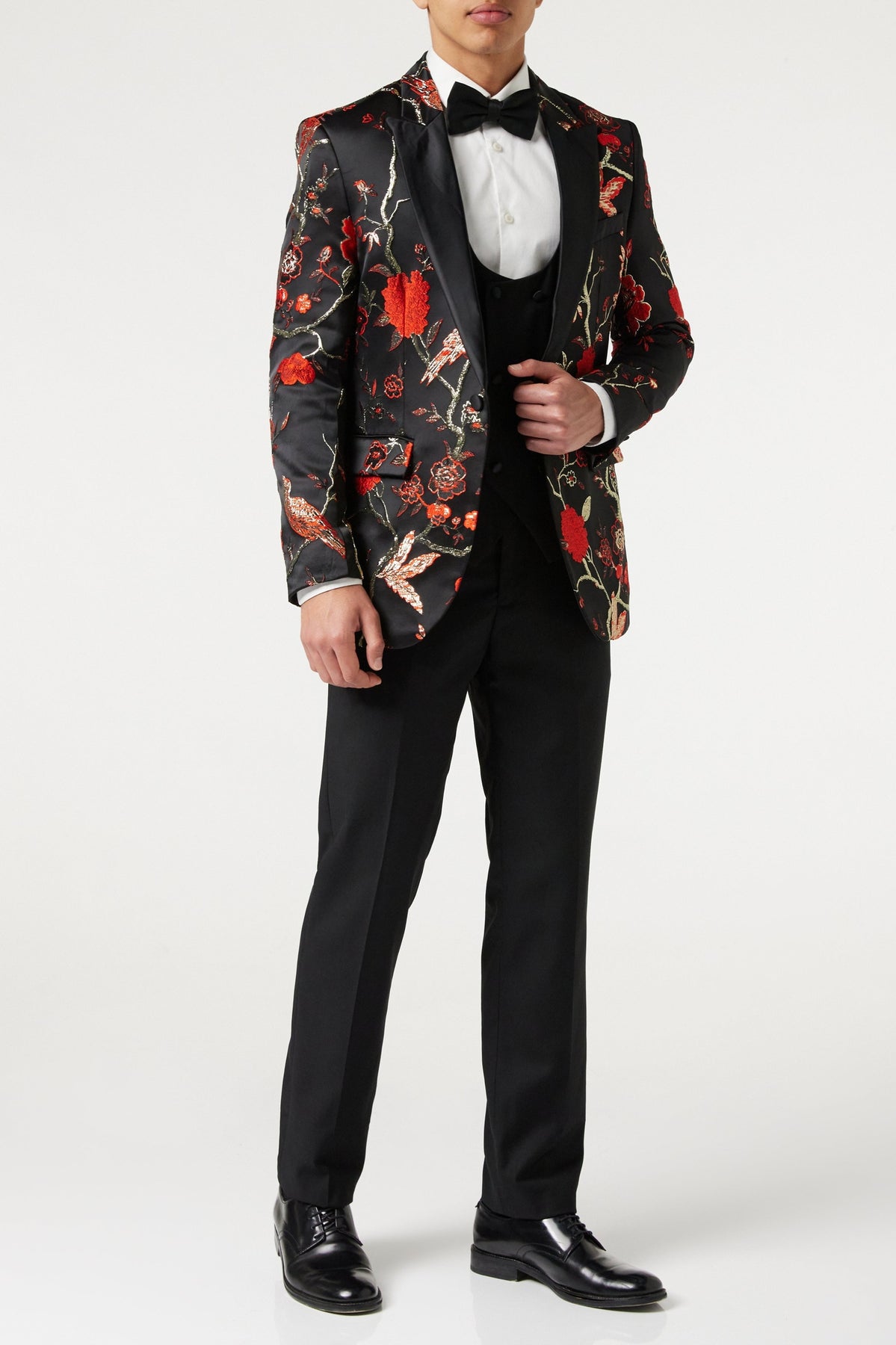 Satin Black Peak Lapels, Front Pockets with Satin Trim Flap Pockets, Single Vent in Back, Single Button Front