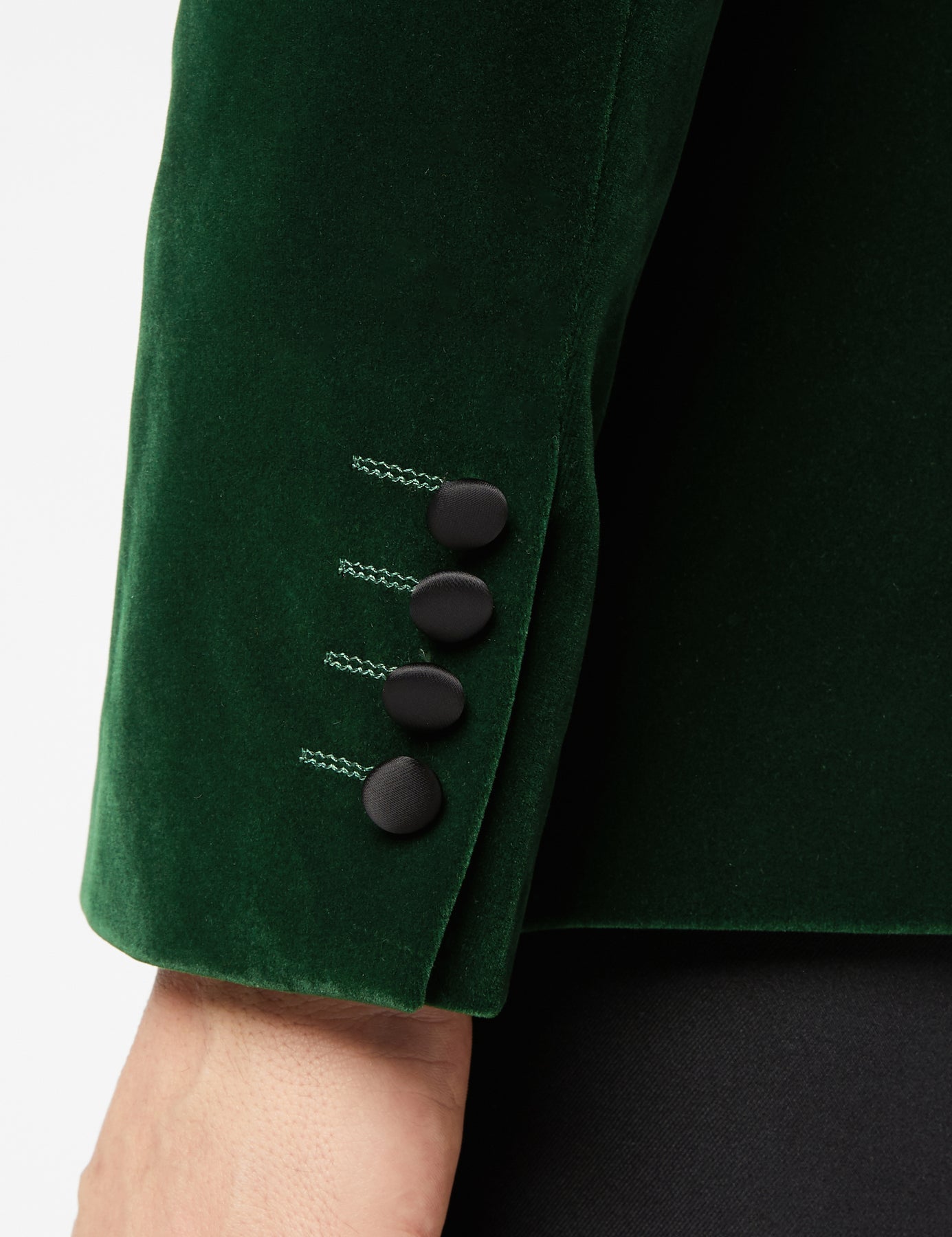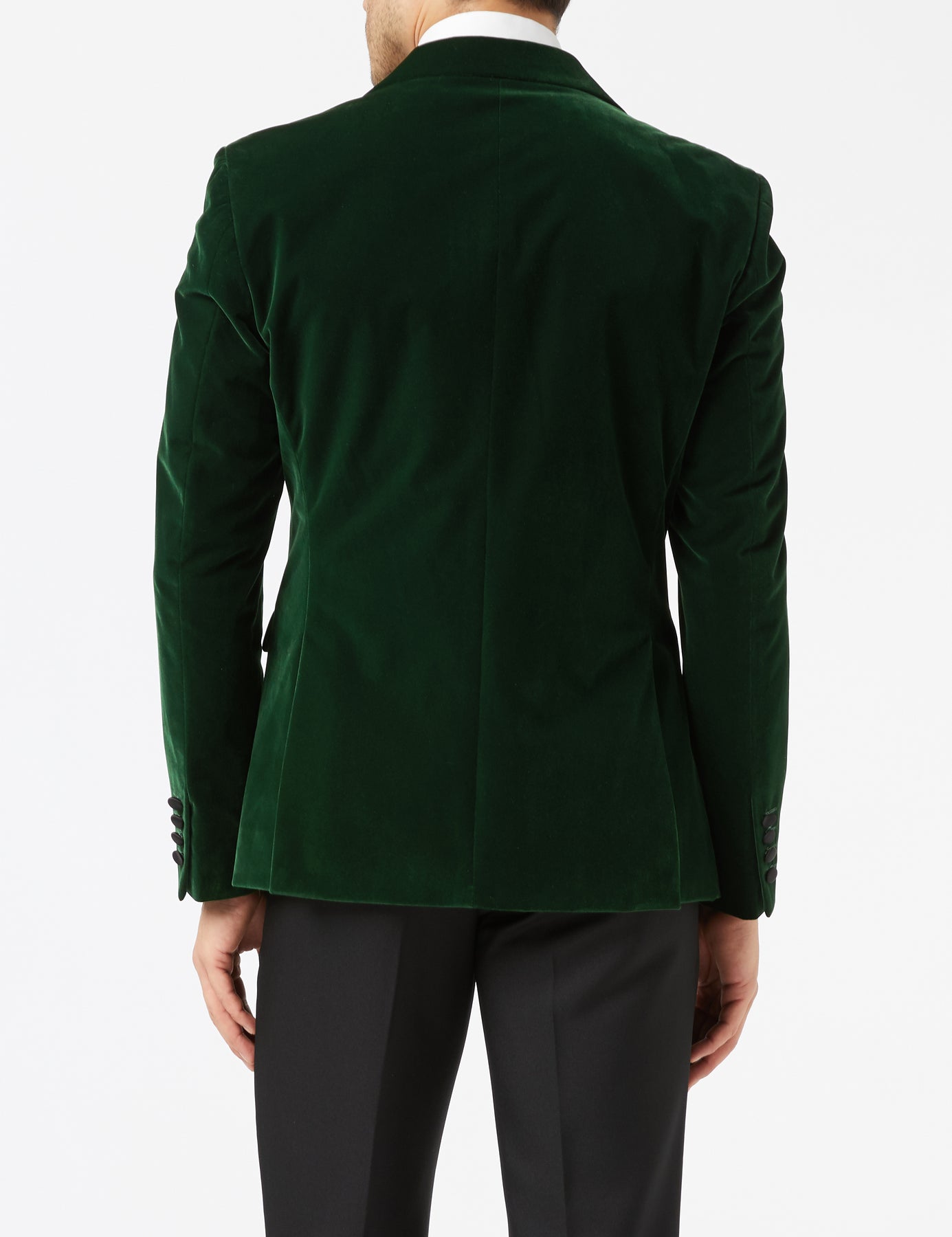 Two Velvet Flap Pockets at Waist, Breast Pocket, Double Vent in Back
